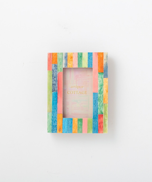 廃棄されてしまうラクダの骨を使用し、ハンドペイントで色付けしたカラフルなミニフォトフレームです お部屋に絵画を飾るような気持ちで、そのままでも使えるよう内紙のデザインもフレームに合わせたデザインをプリントしてくれています 置いておくだけでもお部屋が明るくなるような元気になる色味のフォトフレームです♡ 立てかけても 壁にかけても お気に入りの写真やポストカード 英字新聞を挟んでもオシャレに✨ 他のフォトフレームや フラワーベースなどと組み合わせてディスプレイで ステキなインテリアが簡単に出来上がります◎ ギフトやウェディングディスプレイにも♡ サイズ 約 7.5×10cm(窓直径4×6cm) 生産地 インド 素材 キャメルボーン MDF ガラス ハンドペイントのため、色味に個体差あります ※実物に近い色になるよう撮影しておりますが、モニターによっても多少色味が異なります。 ご了承ください。