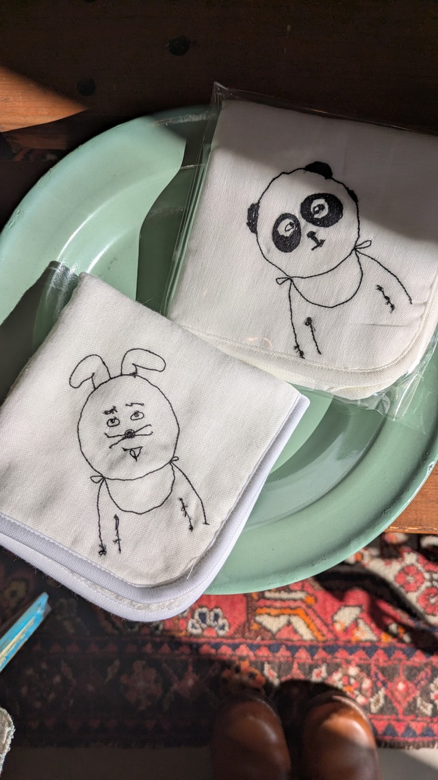 菅原しおんさんデザインのミシン刺繍でできる プロダクト やわらかくて心地よいタオルハンカチ シュールでブサカワなが最大の魅力に♡ ミシン刺繍であえてキレイに作りすぎないようだったり、糸だまりをつくることで表情のニュアンスが1つずつ違うのです ニュアンスが違うといってもラブリーな愛らしさと言うよりも、ブサカワな感じ! それがなんとも愛らしいのです♡ タオルハンカチの裏面は、パイル状でタオルのようになっています 表と裏で生地が2枚重なっている作りになっています 【商品について】 ・洗濯の際はネットに入れてください ・刺繍は手作業での製作や商品の特徴として糸溜りや個体差がある場合がございます 手しごとならではの風合いとしてお楽しみください ・綿100%使用 ・日本製 ・初めのうちは多少色落ちすることがございますので、白いものと一緒に洗わないでください。 ・塩素系洗剤、漂白剤は使用しないでください。 ・毛羽立ちやパイル抜けを防ぐため洗濯ネットのご使用をおすすめします。 サイズ 約w:25cm × h:25cm 素材 綿 100% 刺繍 ポリエステル76% ナイロン24% 生産国 日本