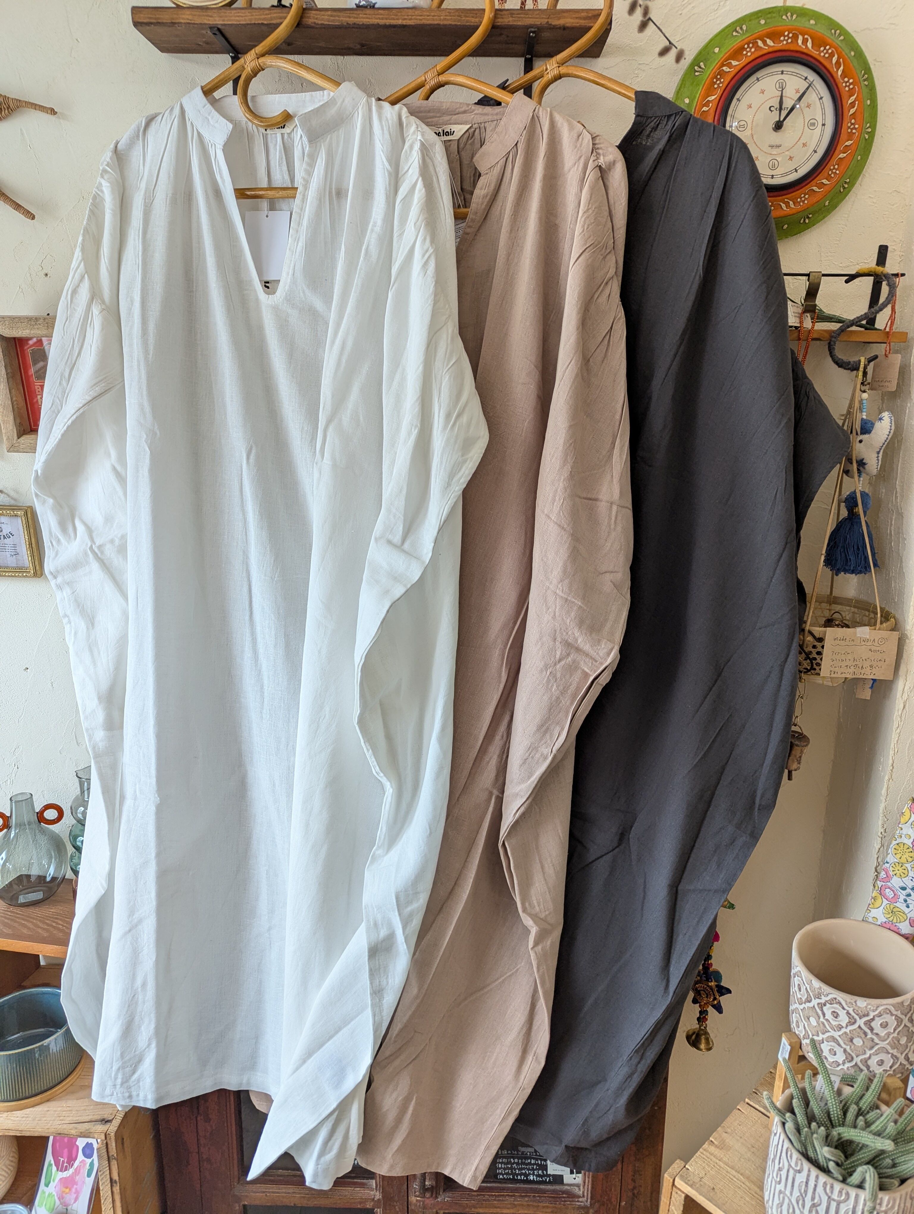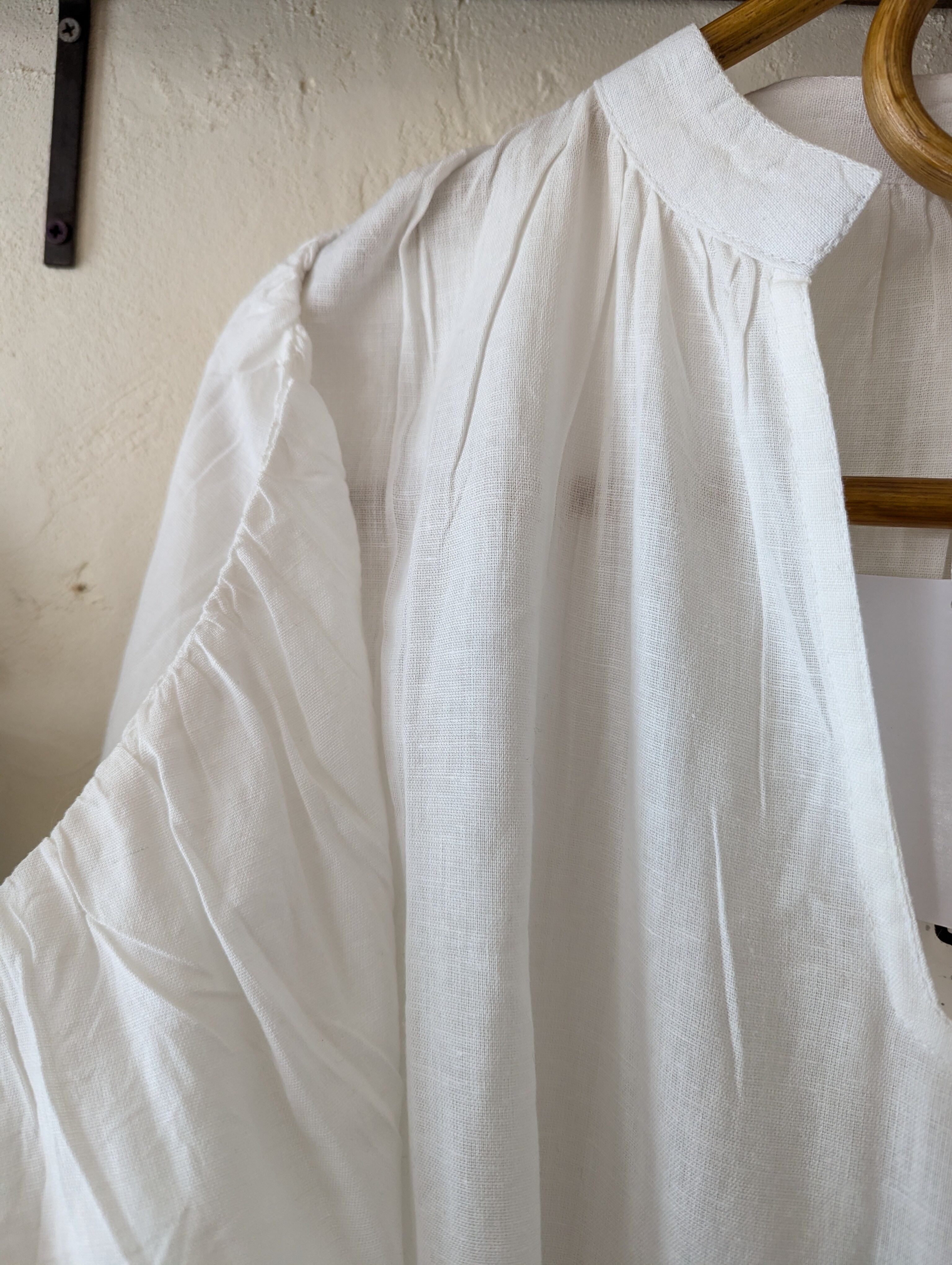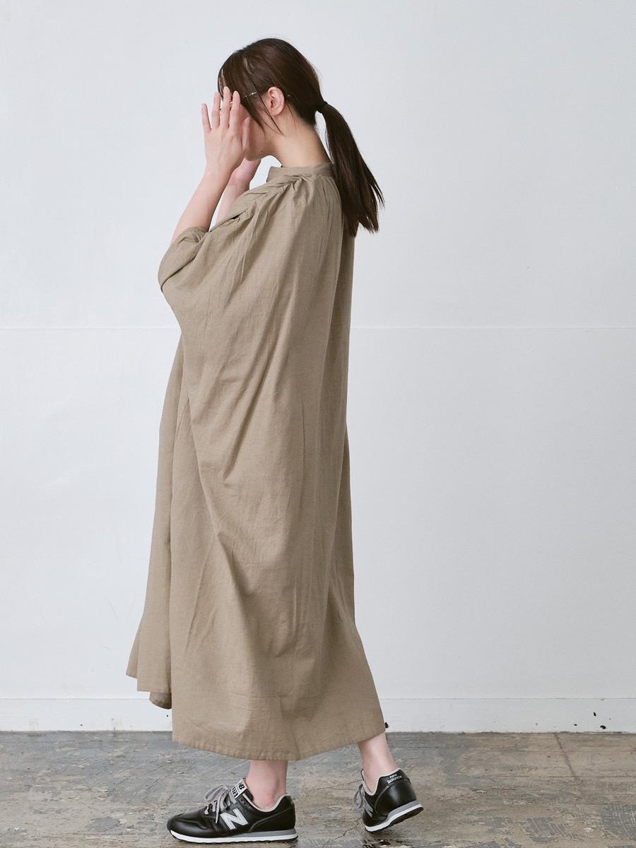 肩まわりにたっぷりギャザー入りのゆったりシルエットで、身幅ゆったりのボックスシルエットです