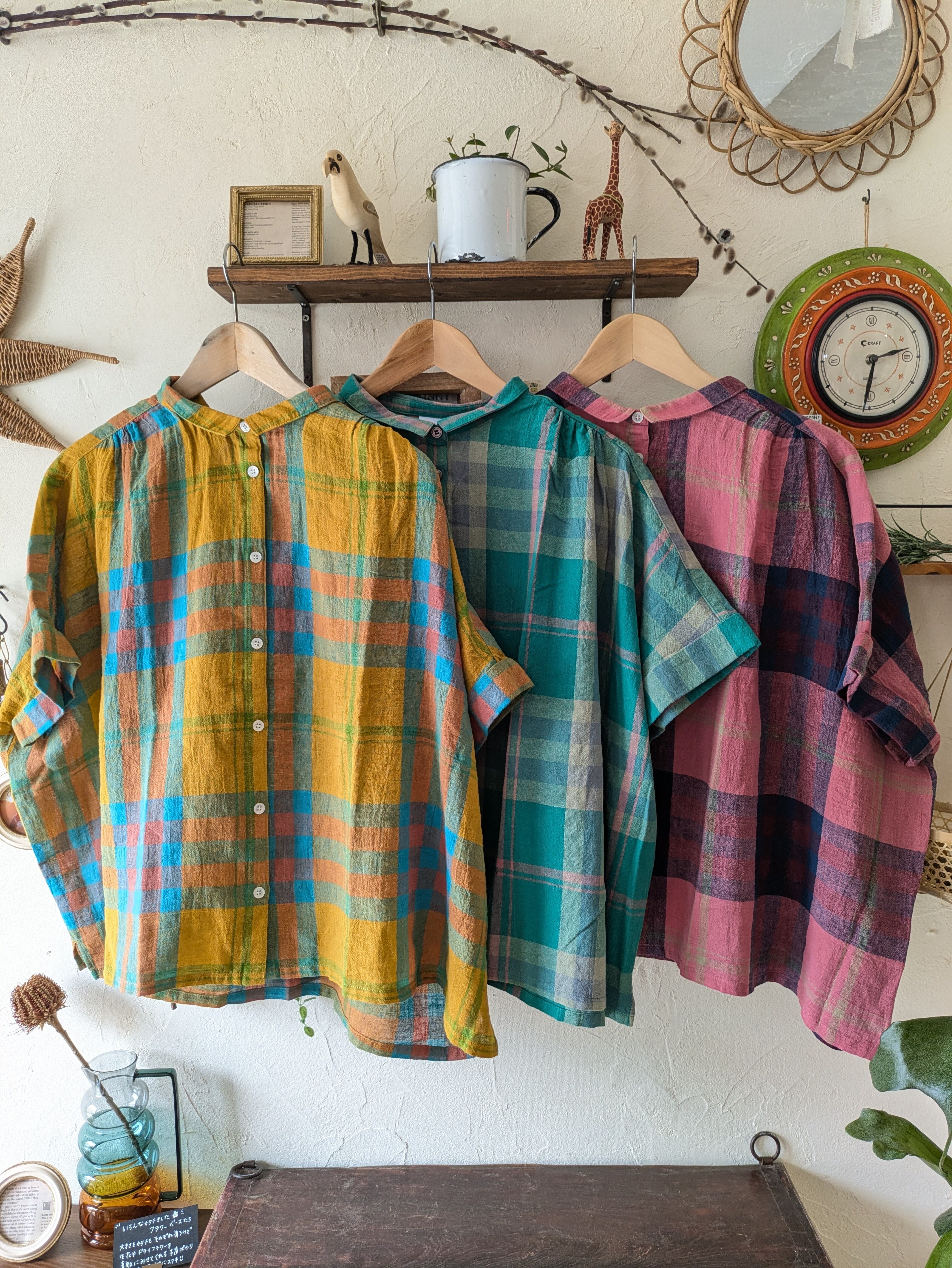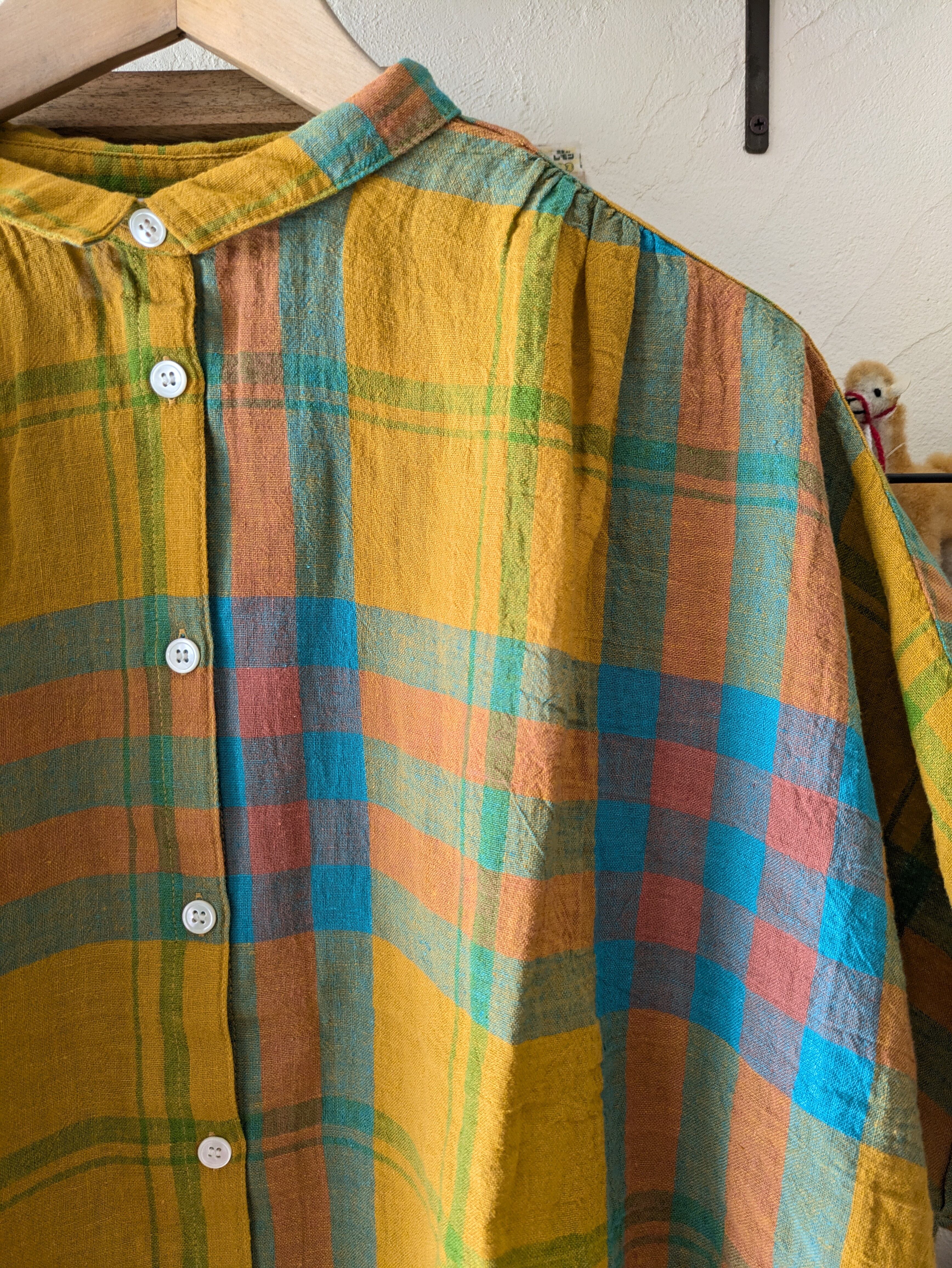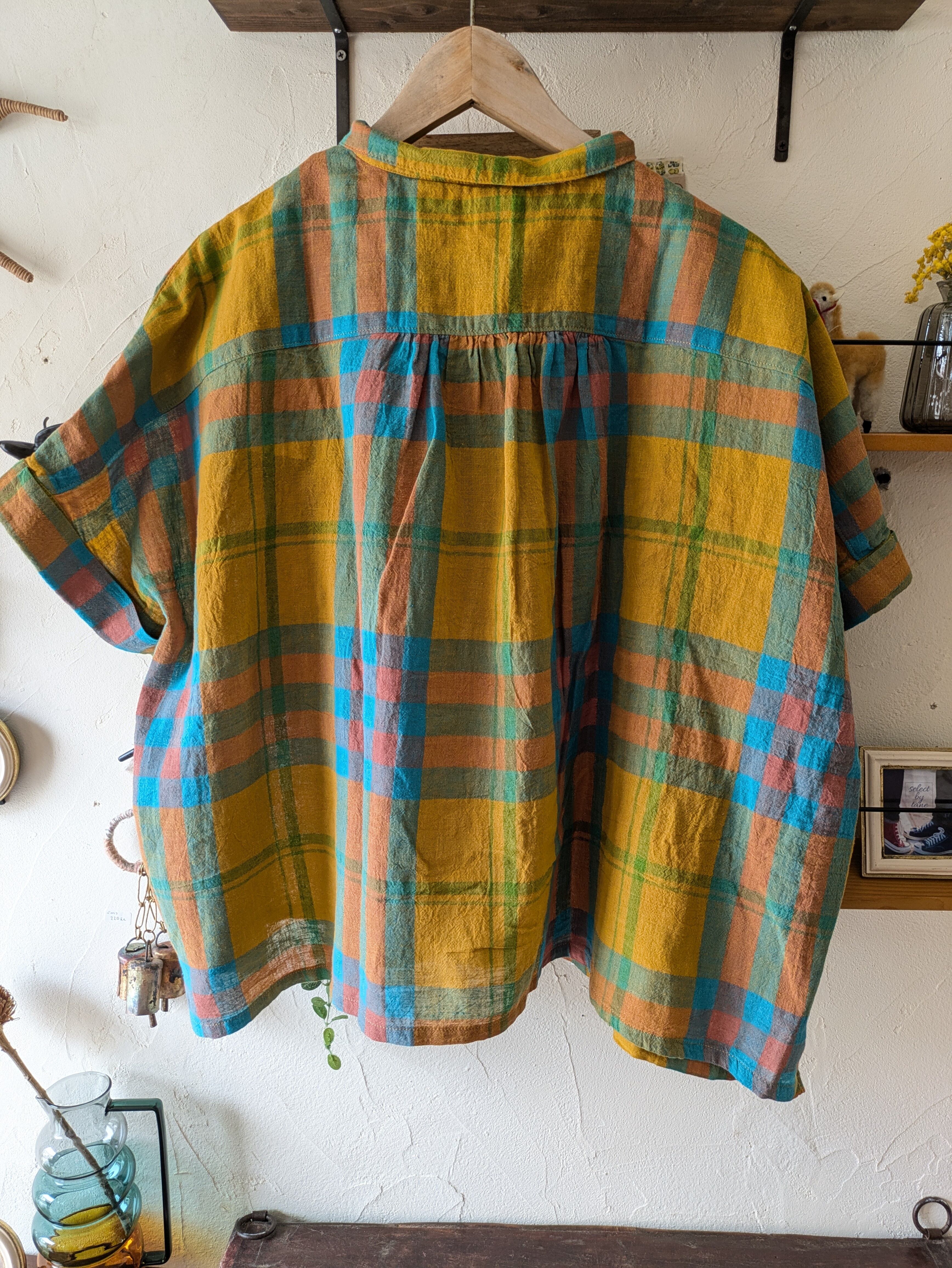 ista-ire イスタイーレ マドラスチェックちび衿ワイドシャツ・イエロー