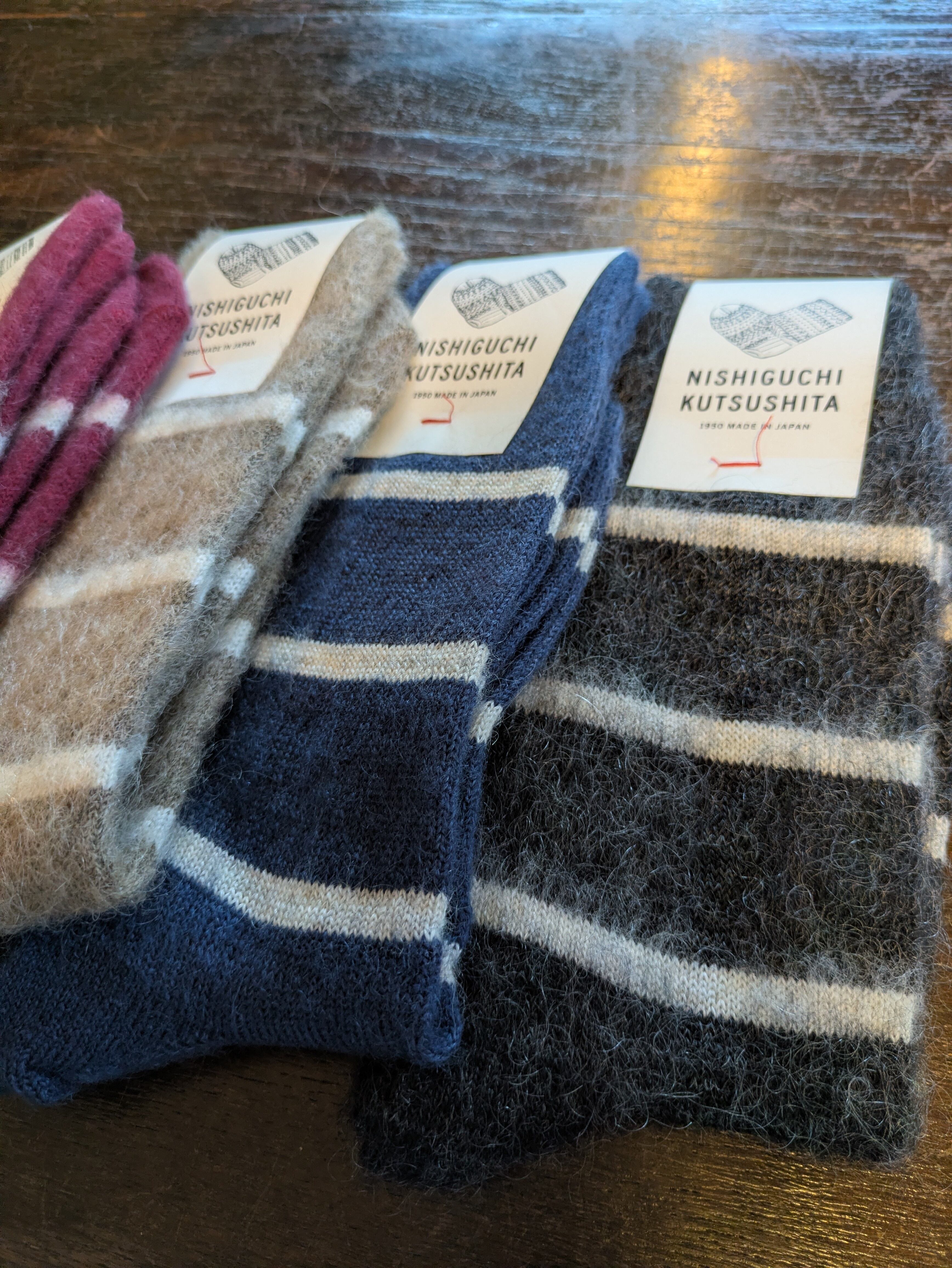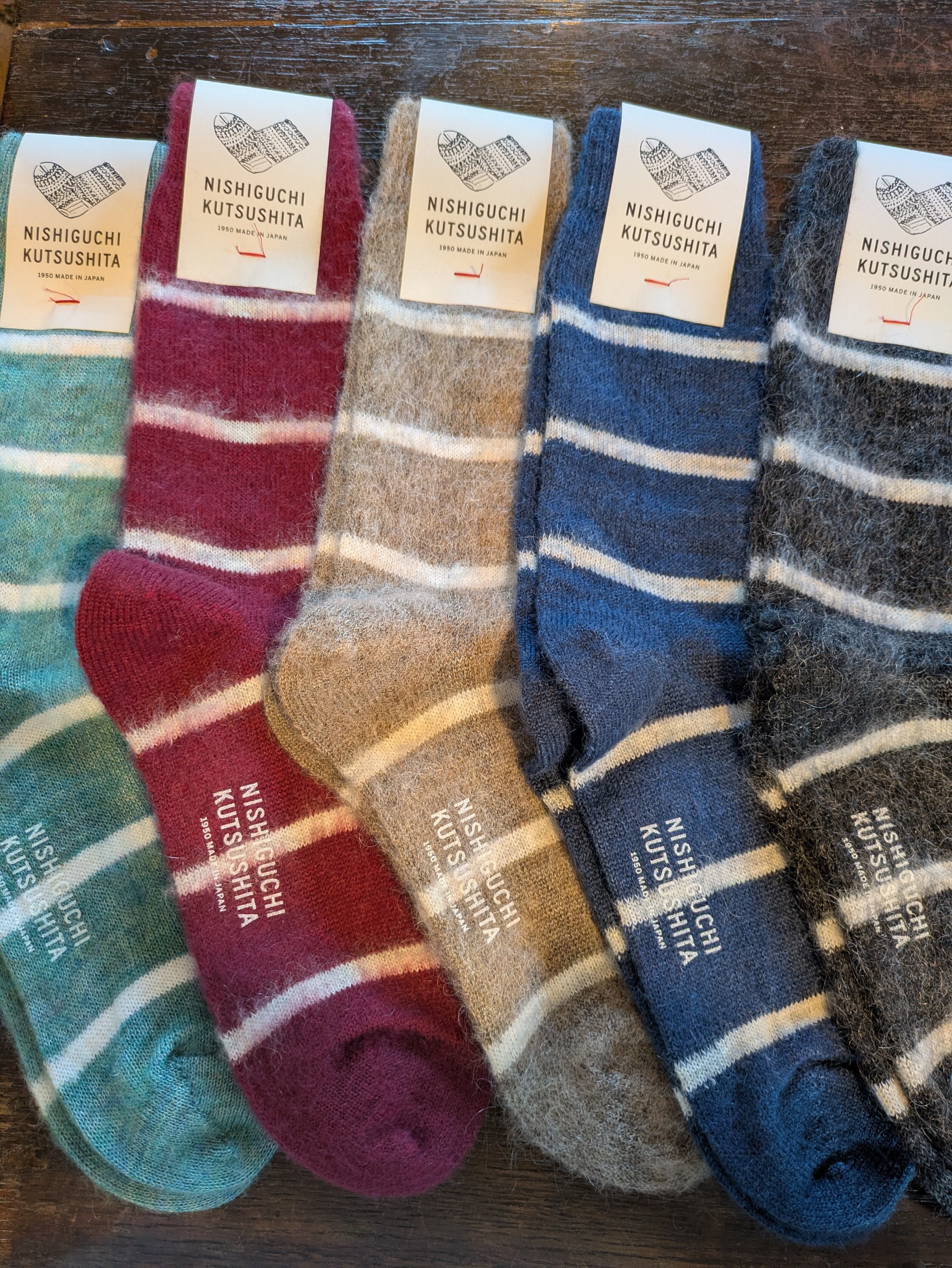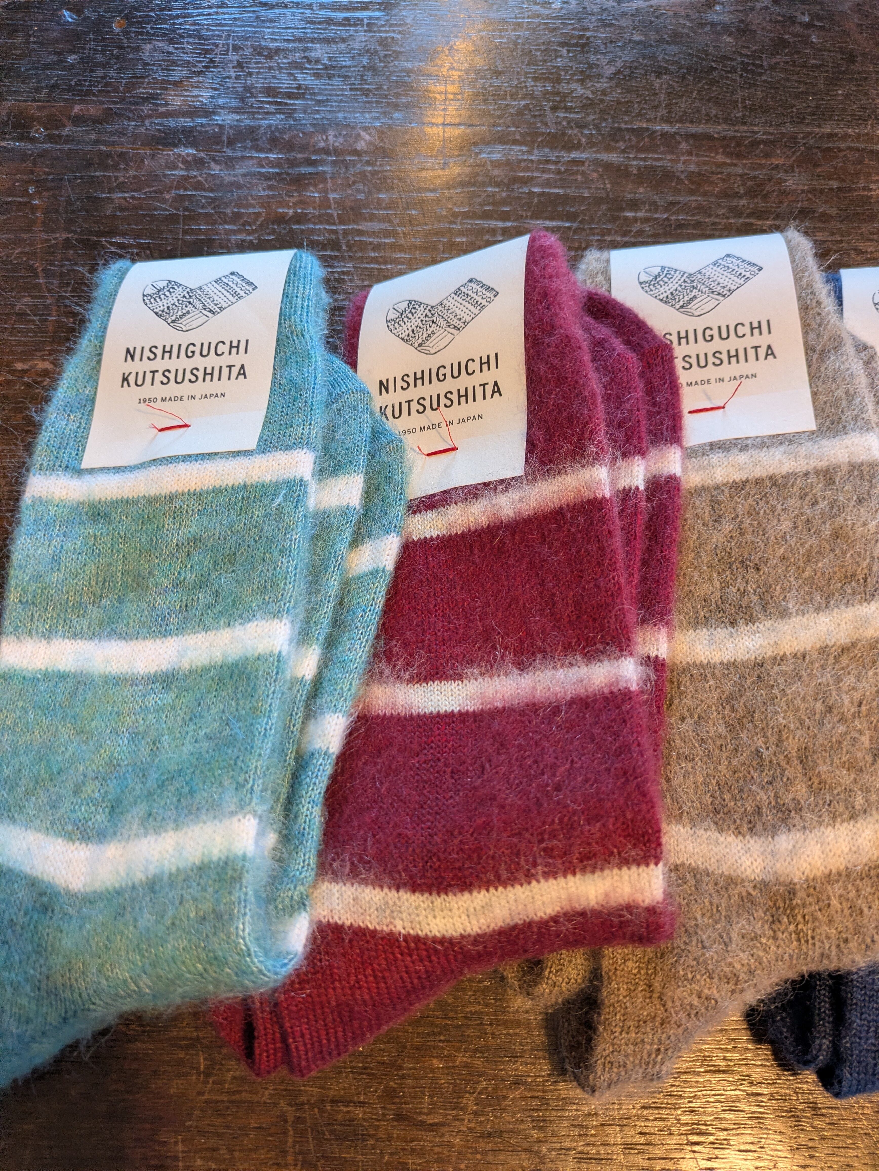 NISHIGUCHI KUTSUSHITA 西口靴下 モヘアウールボーダーソックス 23-25cm