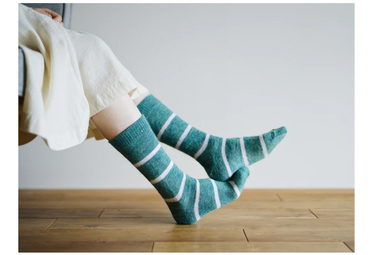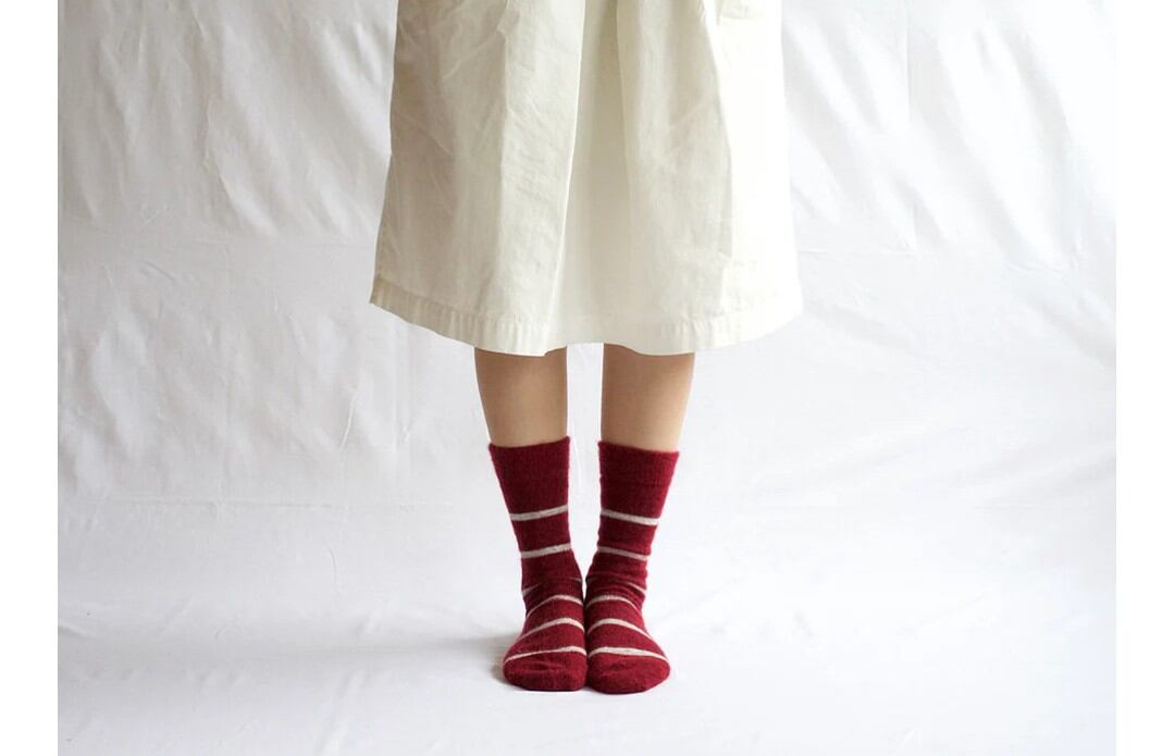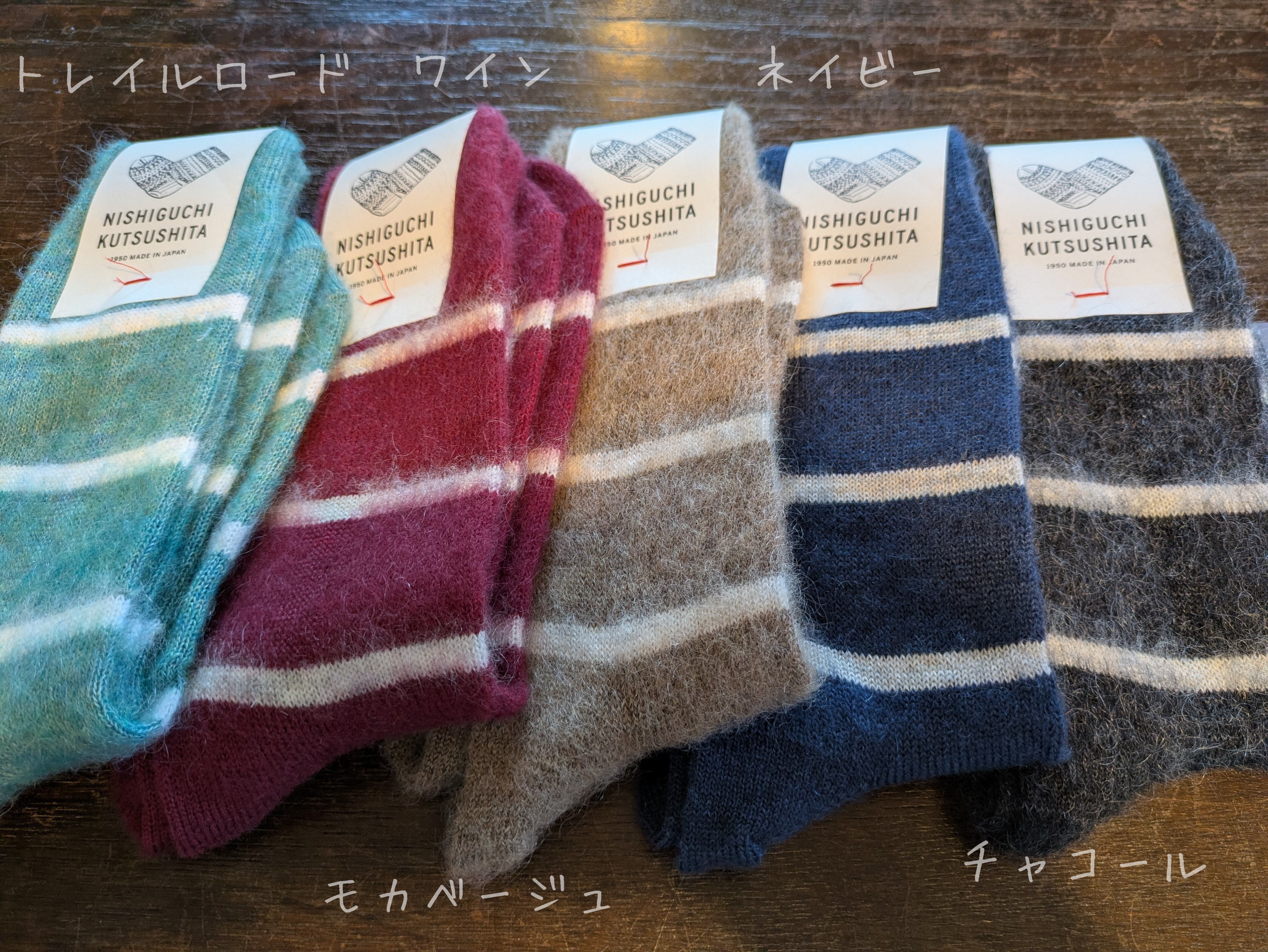 NISHIGUCHI KUTSUSHITA 西口靴下 モヘアウールボーダーソックス 23-25cm