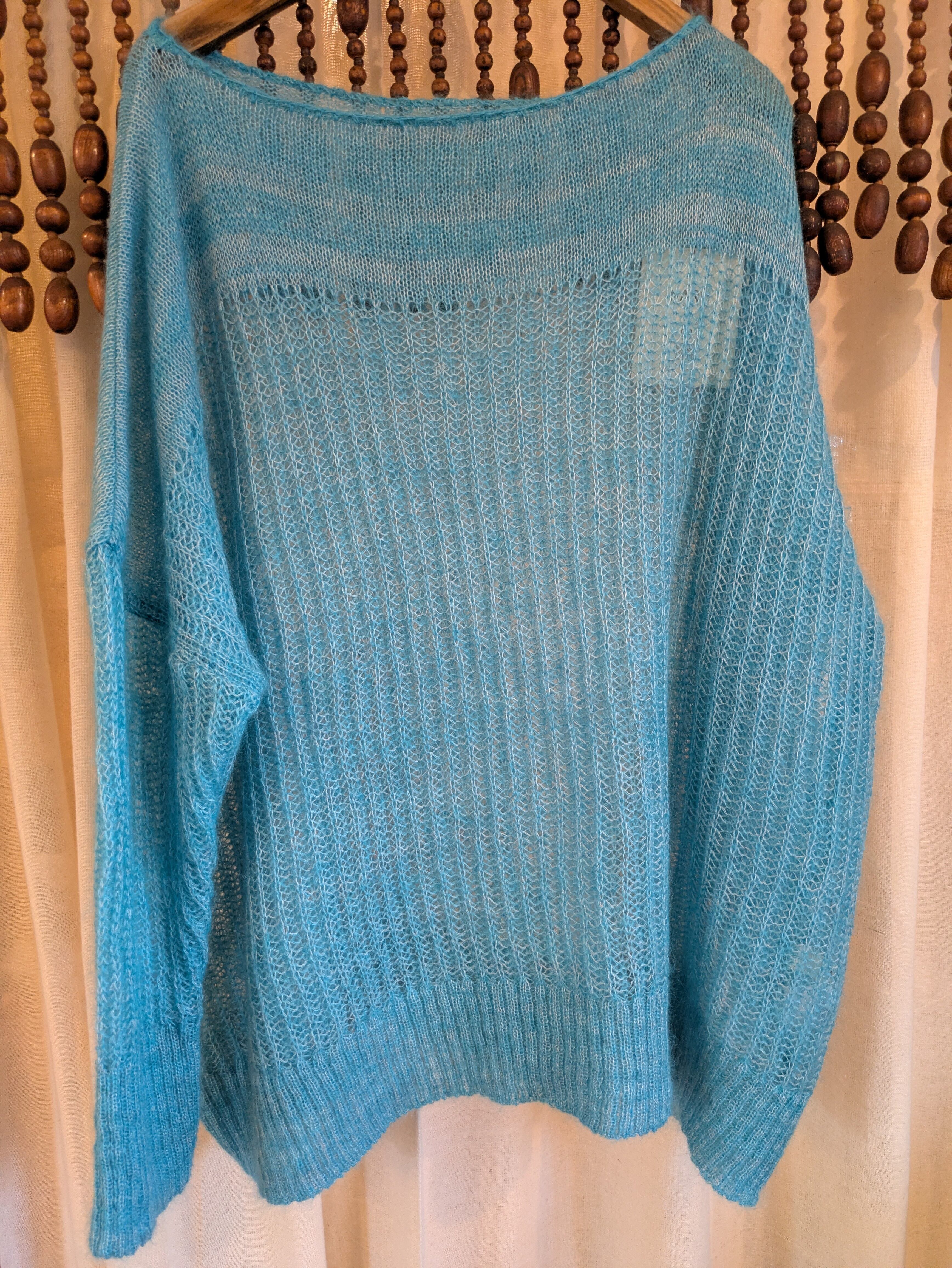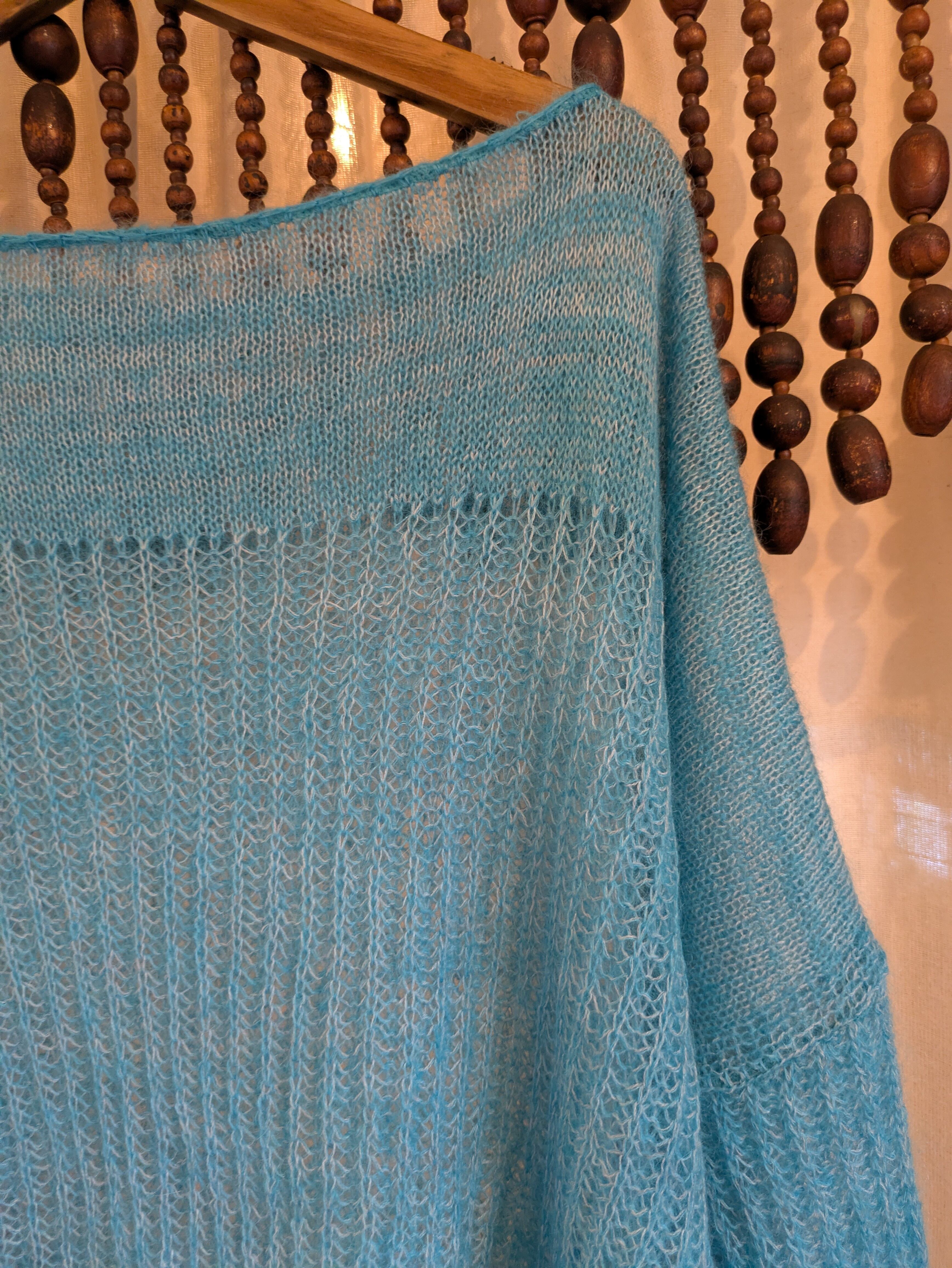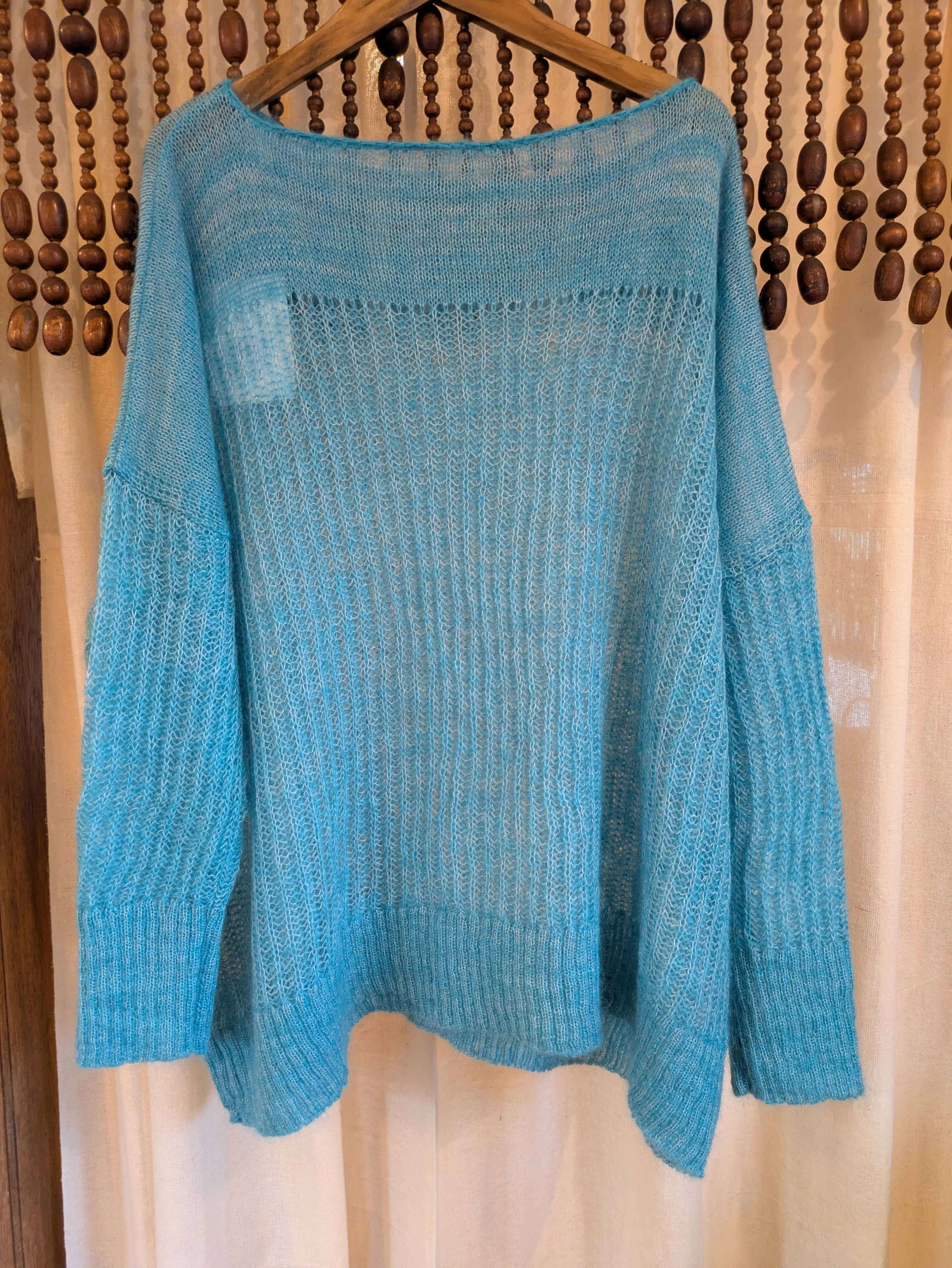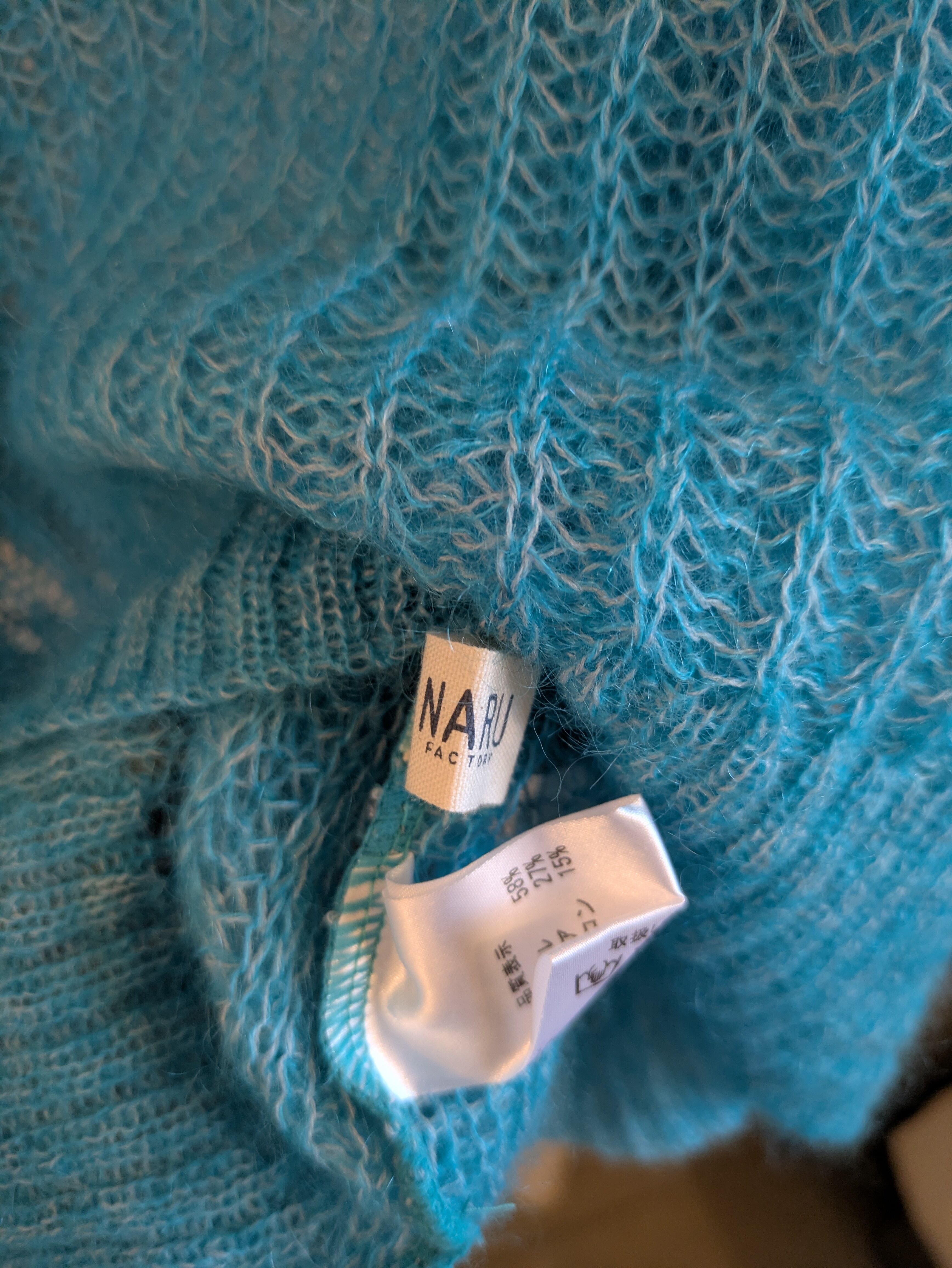 NARU ナル 透かしニットプルオーバー・ターコイズブルー
