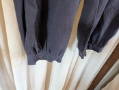 ゆったりとした腰周りと深めの股上で履き心地良く、裾からもギャザーが入り、ふんわり丸みにあるニュアンスシルエットをつくります