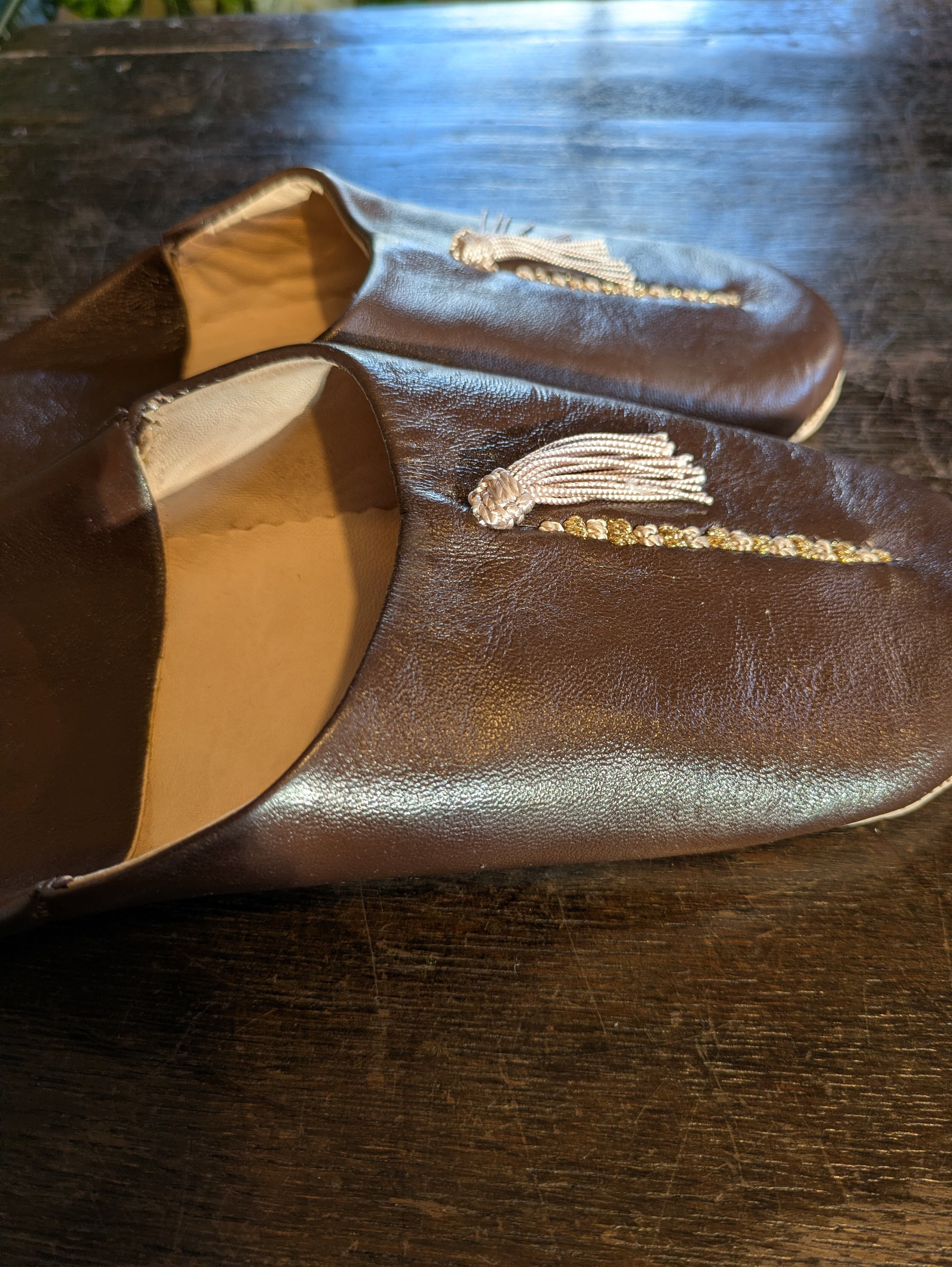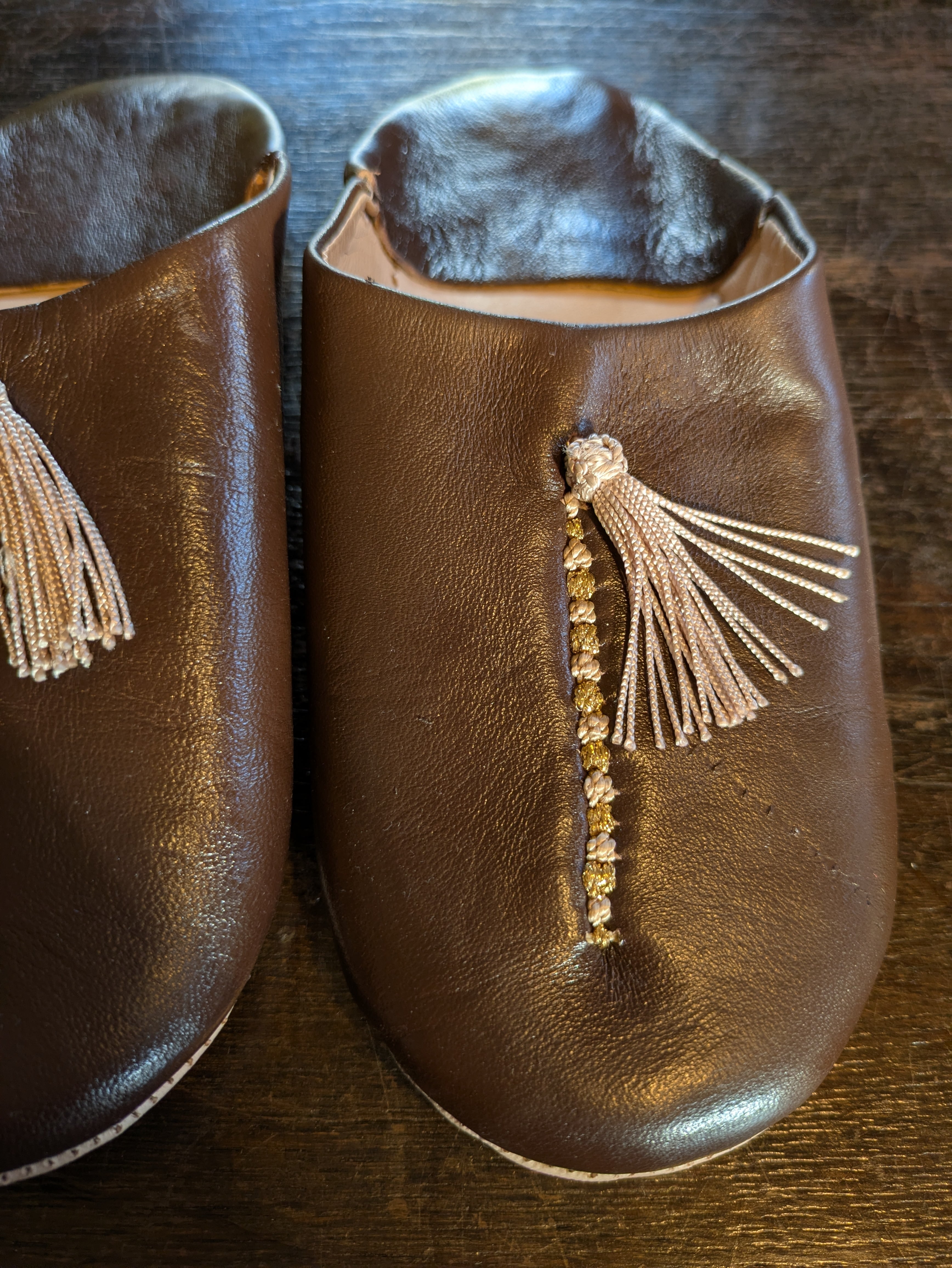 モロッコ サブラ装飾バブーシュ(焦げ茶×ベージュ×ゴールド)(24.5cm)
