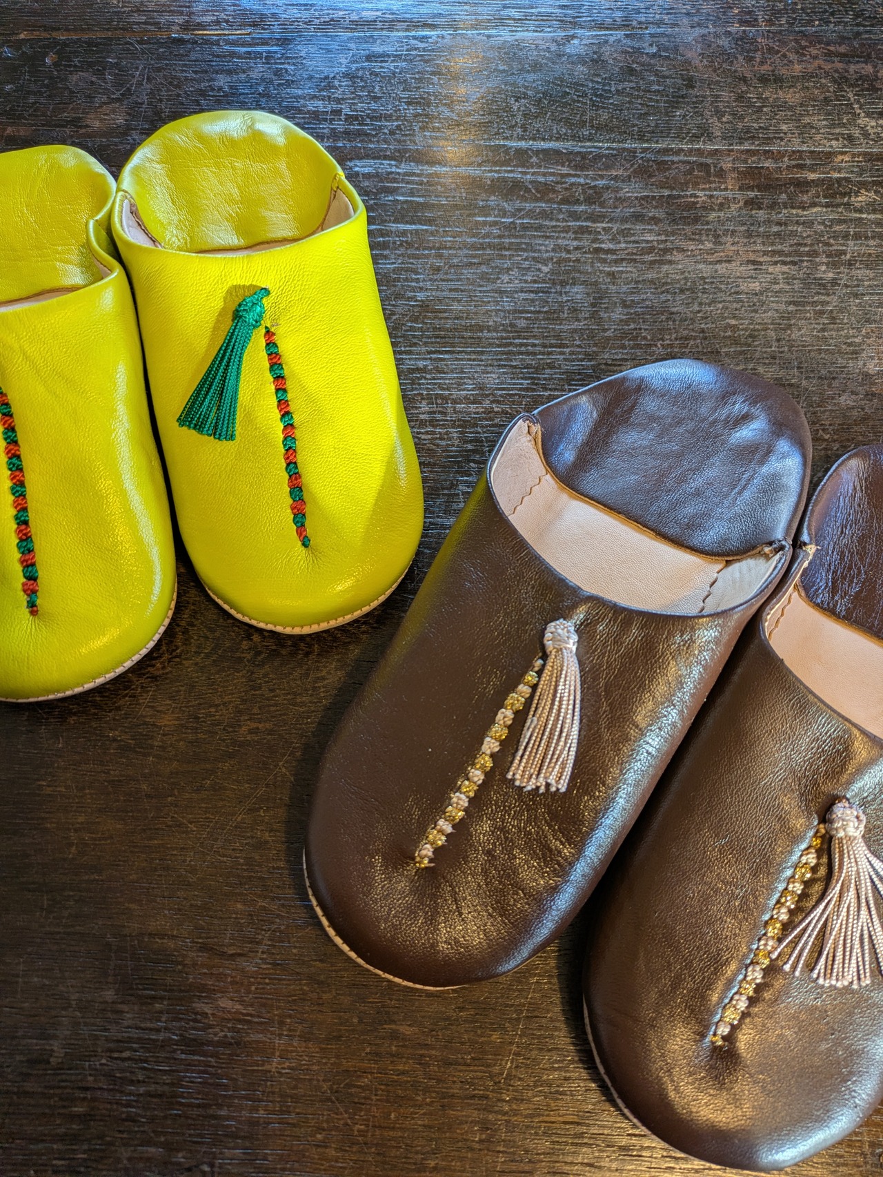 バブーシュは昔からモロッコの人々に愛され、日々履かれている羊革のスリッパの事。