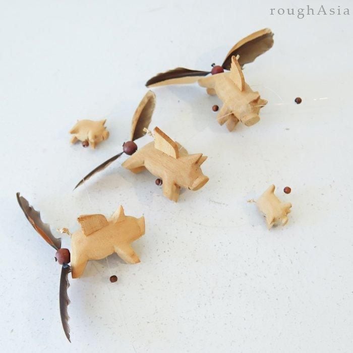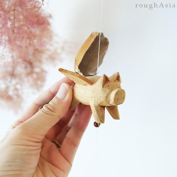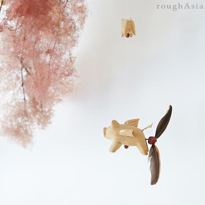 木彫りのぬくもりが伝わるやさしいアニマルモビールです