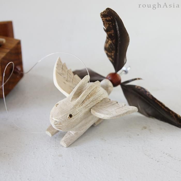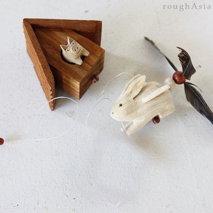 【タイ】木製モビール ウサギと小屋