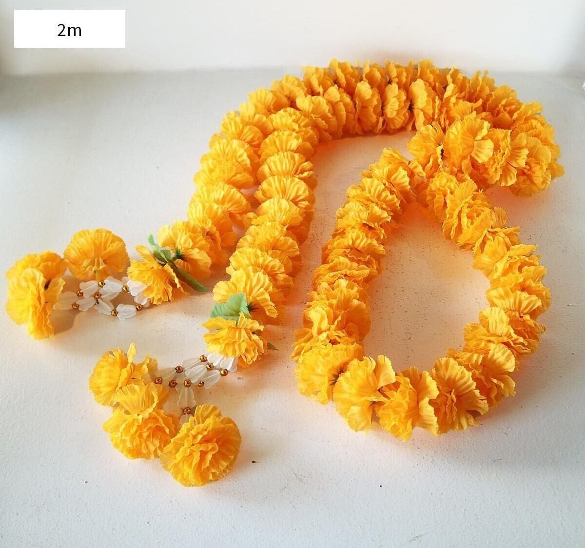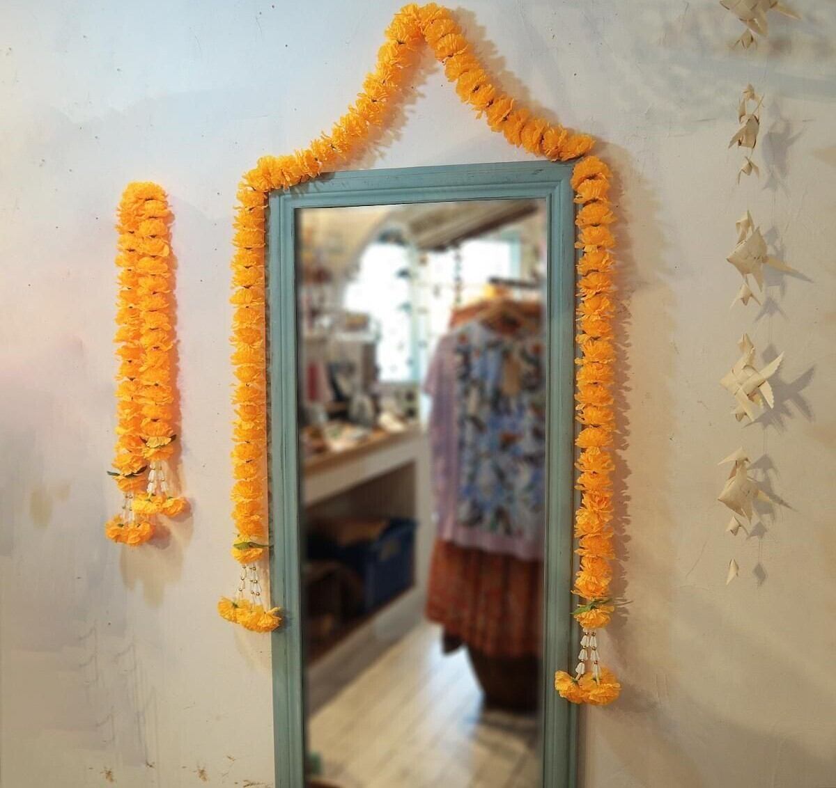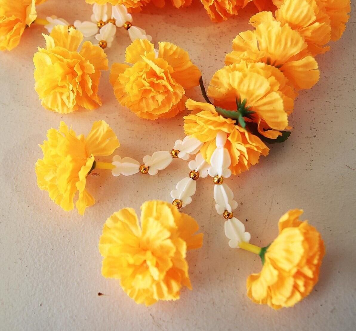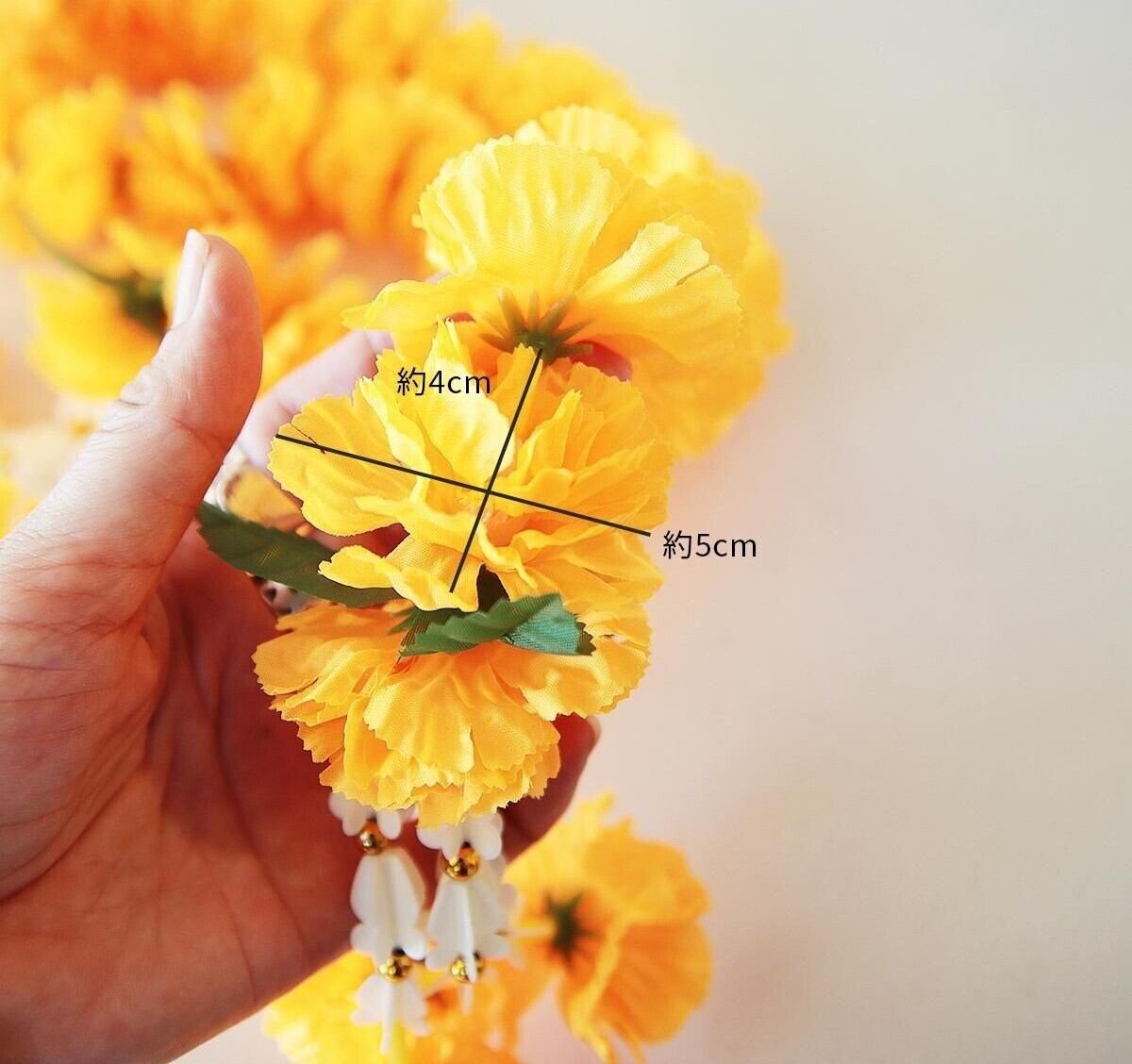 オレンジの花はマリーゴールドの造花が使われていて、繁栄や幸運の象徴として人々に親しまれているそうです