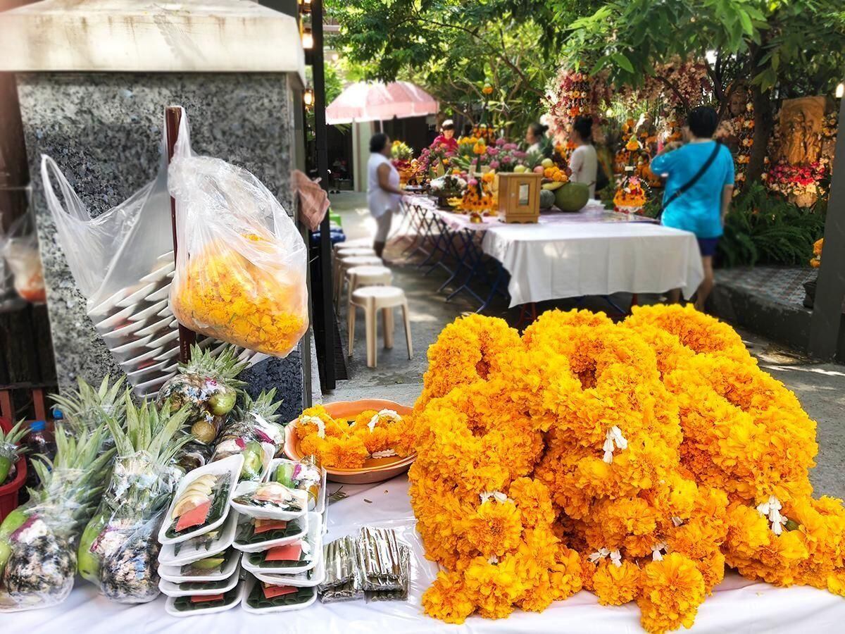 エキゾチックなタイの文化を象徴するマリーゴールドの花飾り