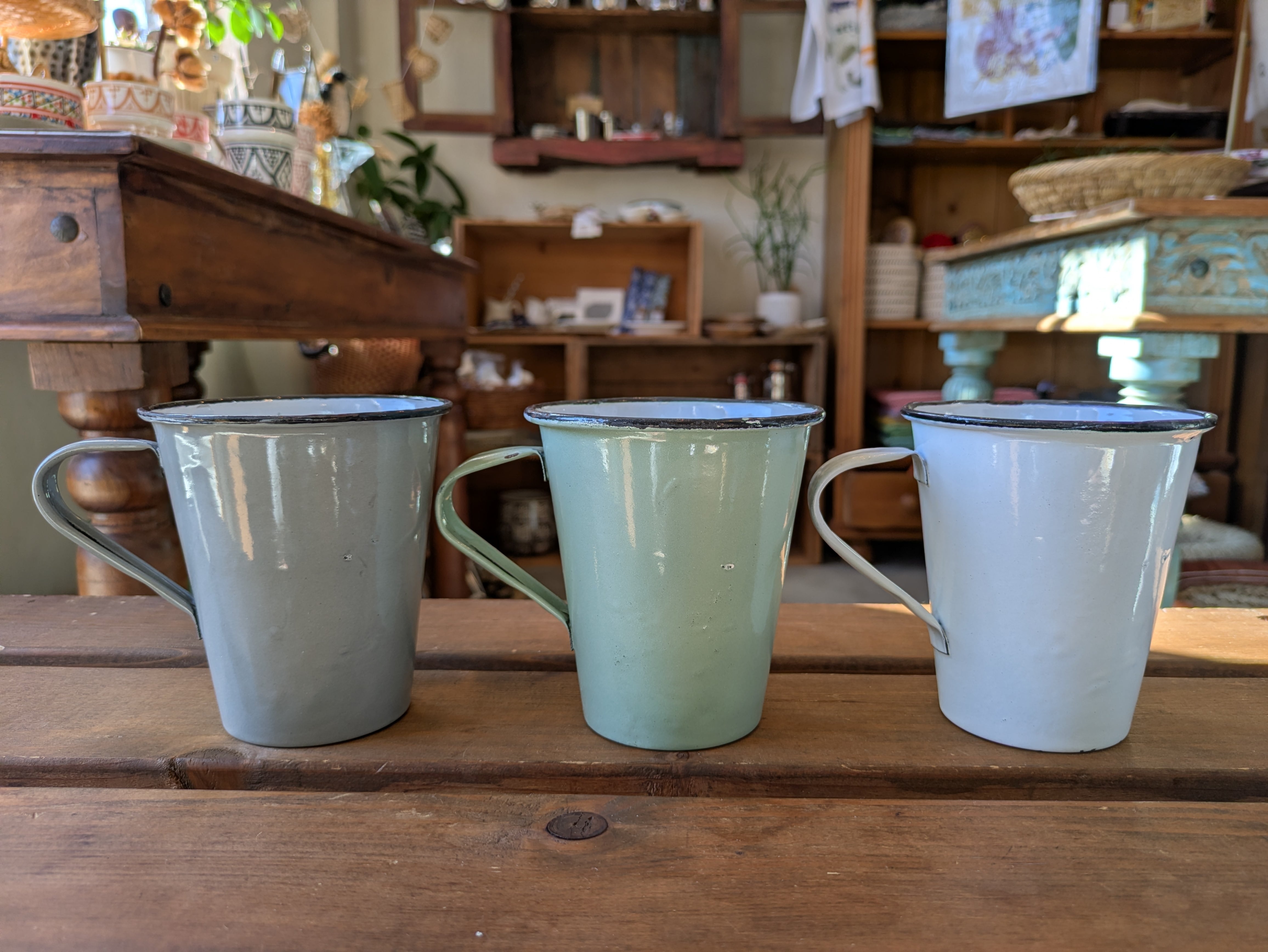 インドのホーロー製品は、鮮やかなカラーとレトロでハンドメイド感のあるデザインが特徴です