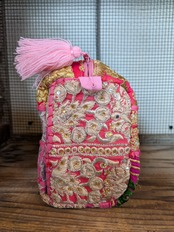 ザリ刺繍とは、インドの伝統的な刺繍技法で、金や銀のモール糸を釣り針のような針で縫い付けて模様をつくるものです