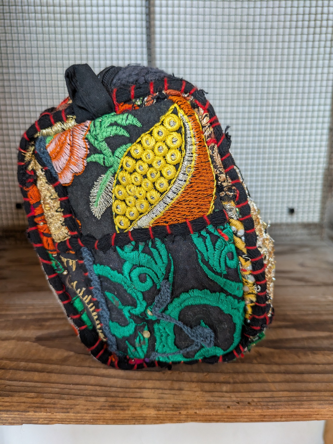 【インド】ザリ刺繍ポーチ・ブラック②