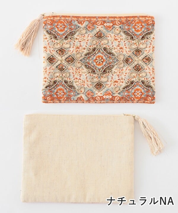 【インド】ビーズ刺繍ポーチ・小さめサイズ・ナチュラル