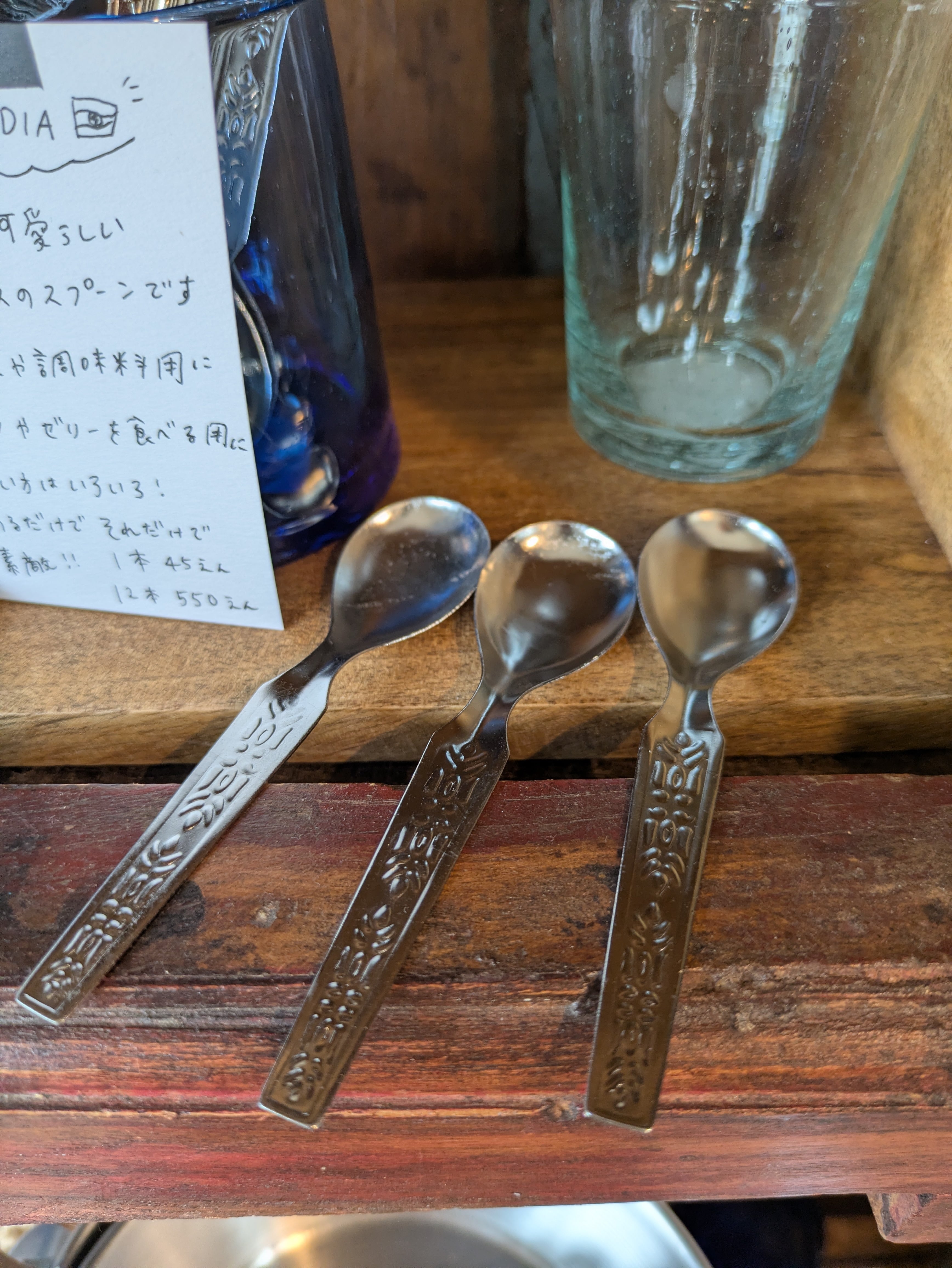 スパイスボックスの付属品としても、よくついているタイプのスプーンで、現地ではスパイスをすくう際などによく使われています
