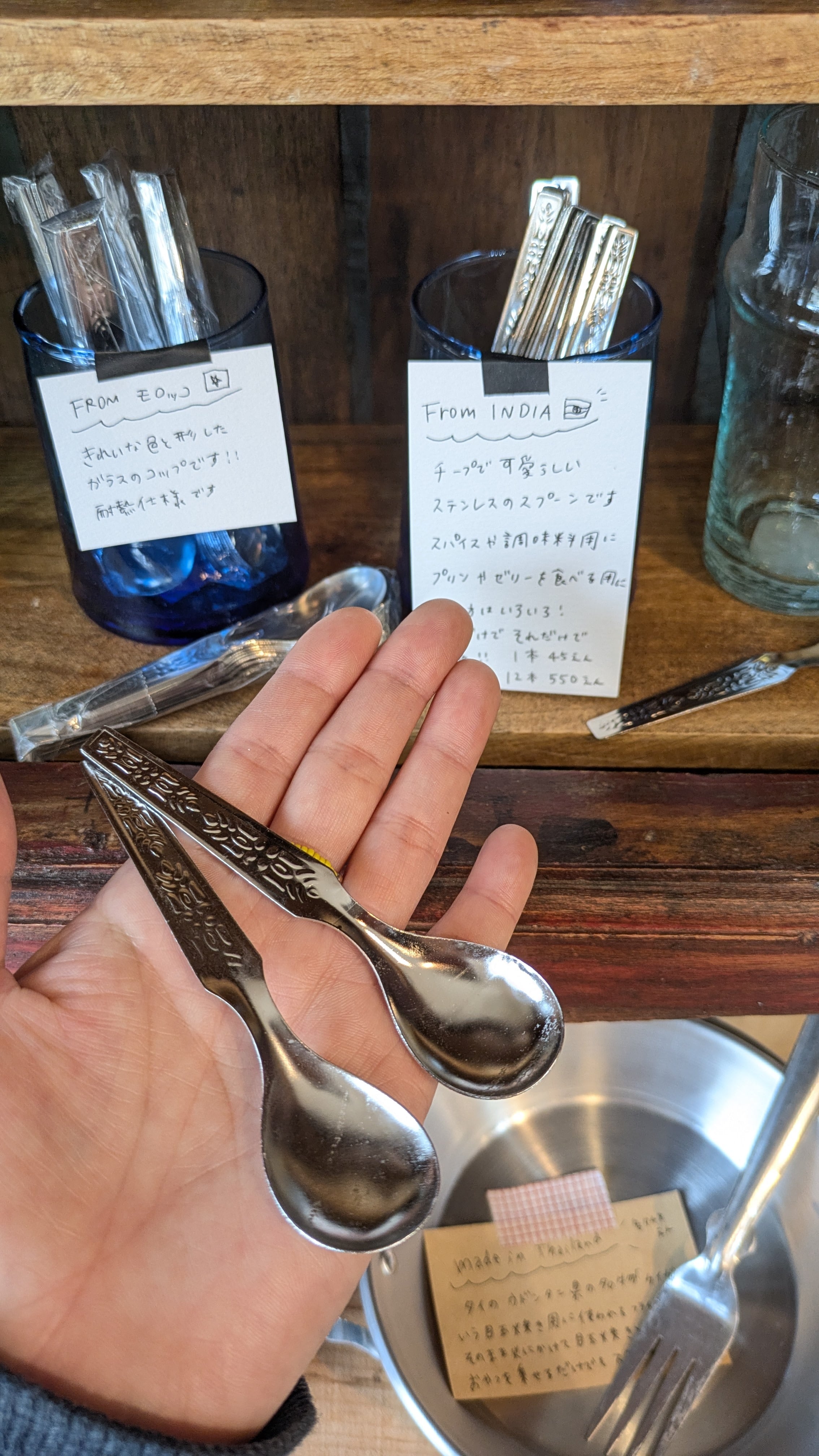 スパイスボックスの付属品としても、よくついているタイプのスプーンで、現地ではスパイスをすくう際などによく使われています