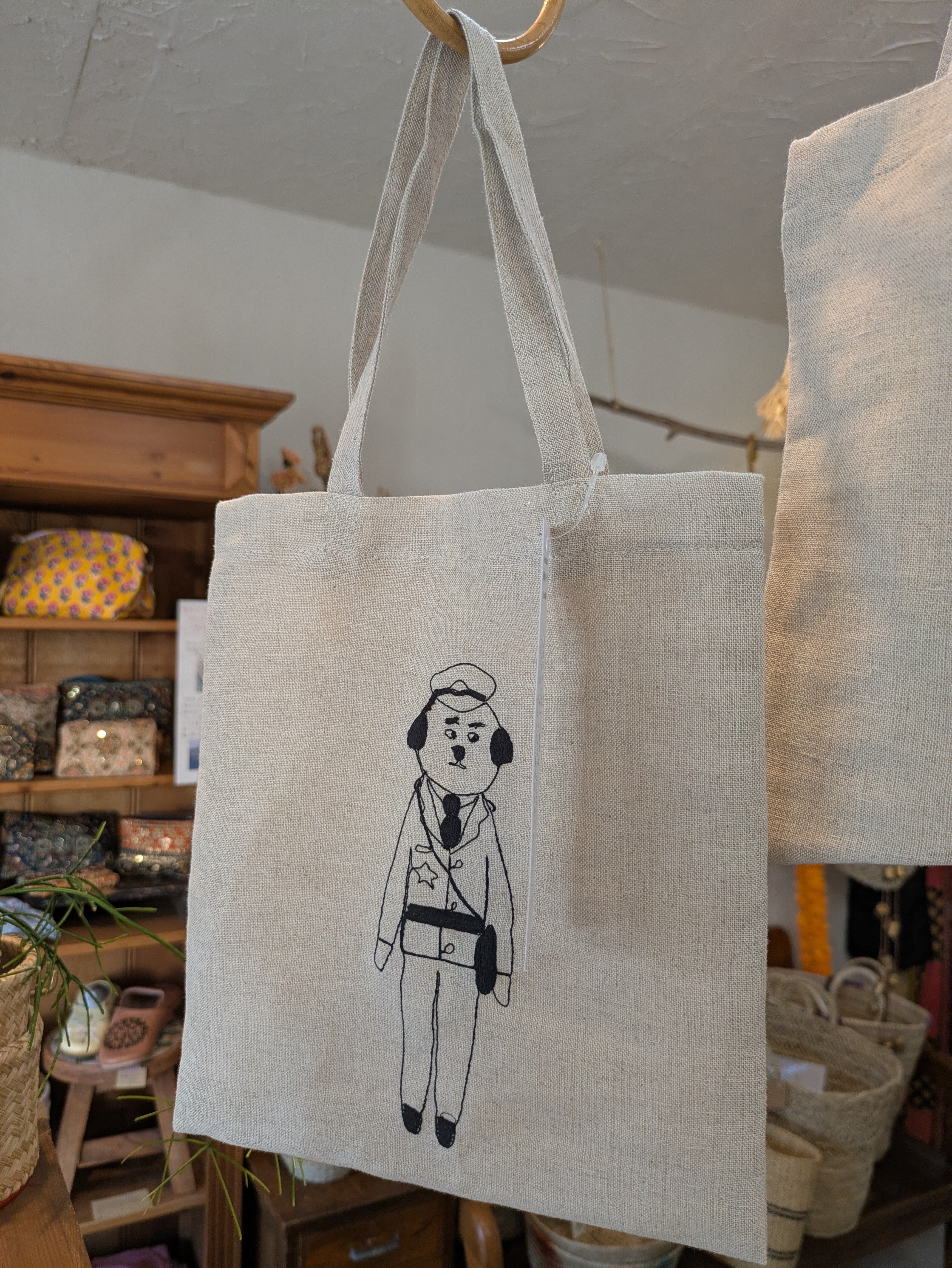 倉敷意匠 sennokoto リネンの刺繍ミニバッグ(おまわりさん)