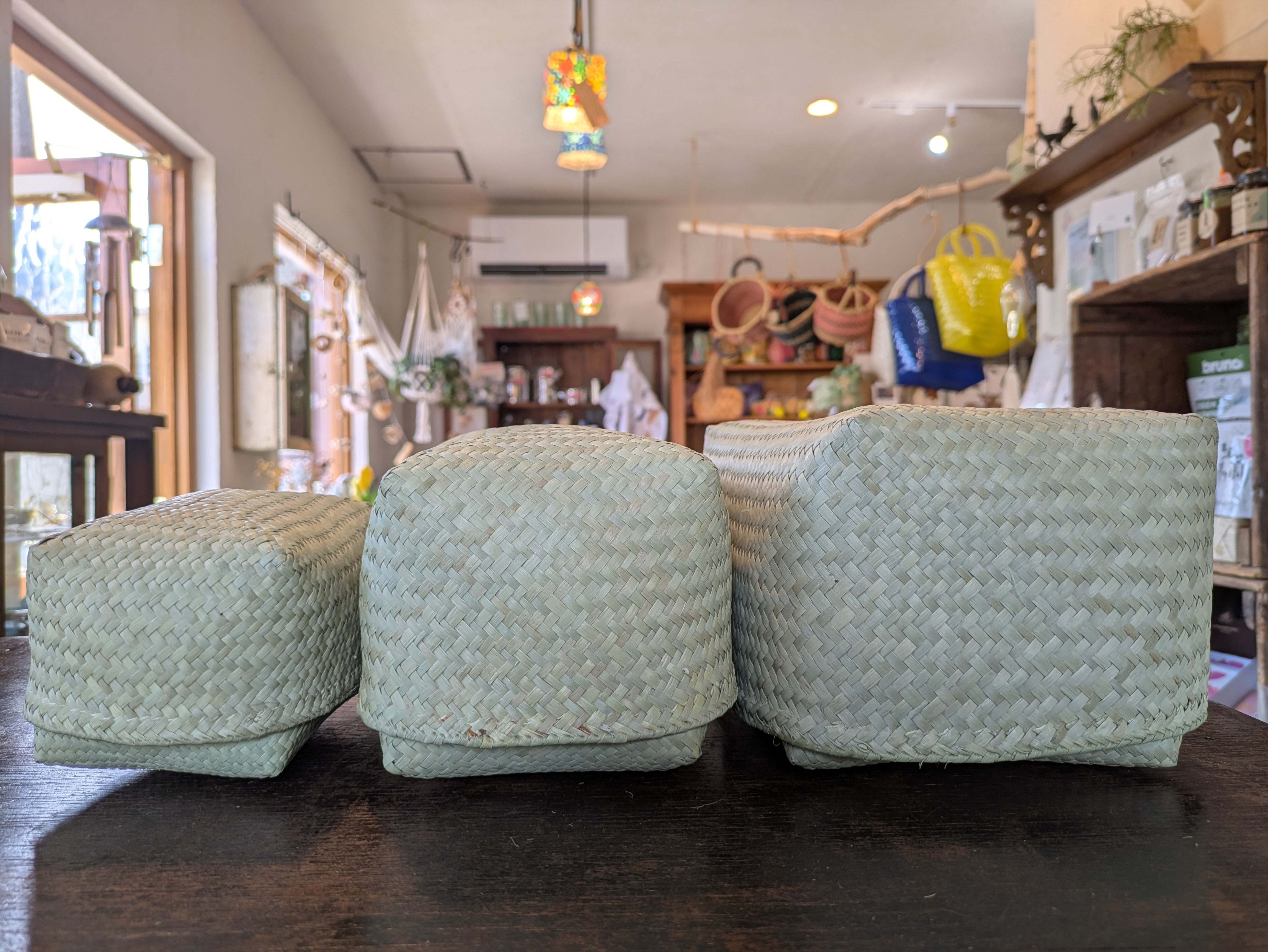 しなやかで軽い素材の『フルナ』と呼ばれる水草を、小物収納箱に編み上げられてつくられた