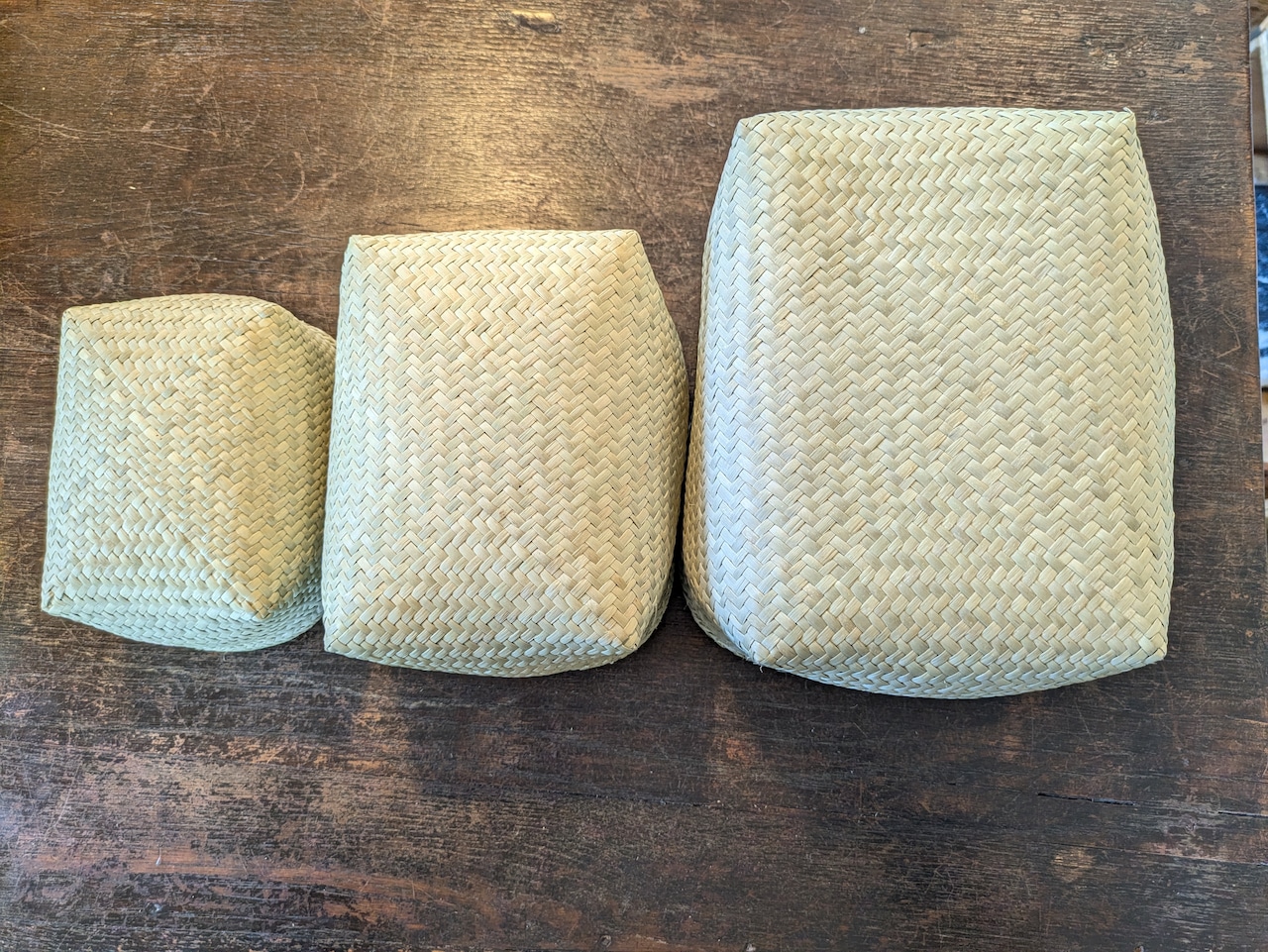 二つのものをすっぽりと合わせてつくられる道具はマダガスカルならではのもので、人々の間に代々伝わる熟練したかご編み技術によって丁寧に仕上げられています