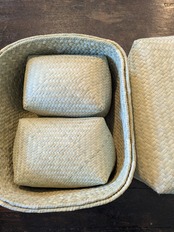 しなやかで軽い素材の『フルナ』と呼ばれる水草を、小物収納箱に編み上げられてつくられた