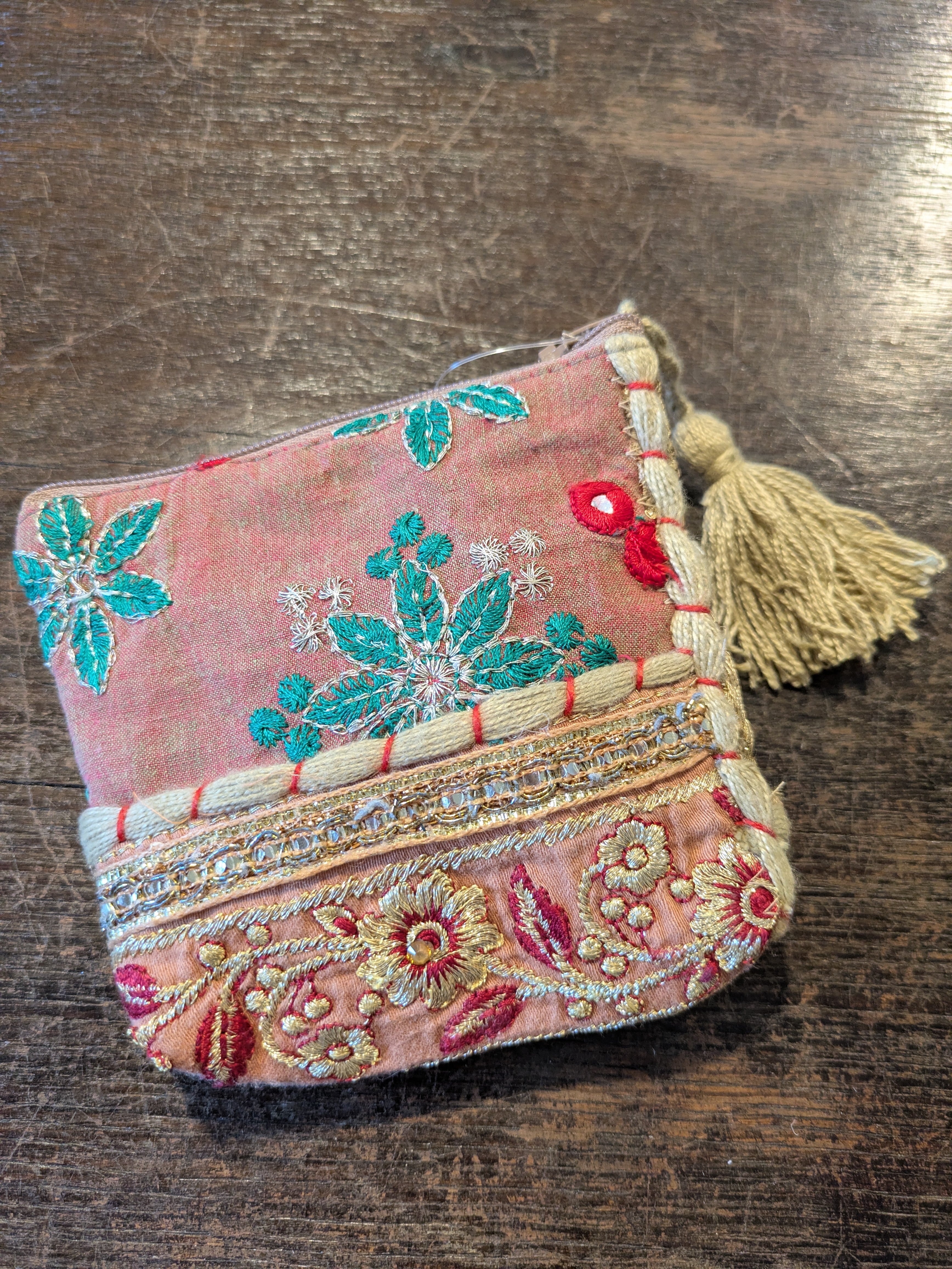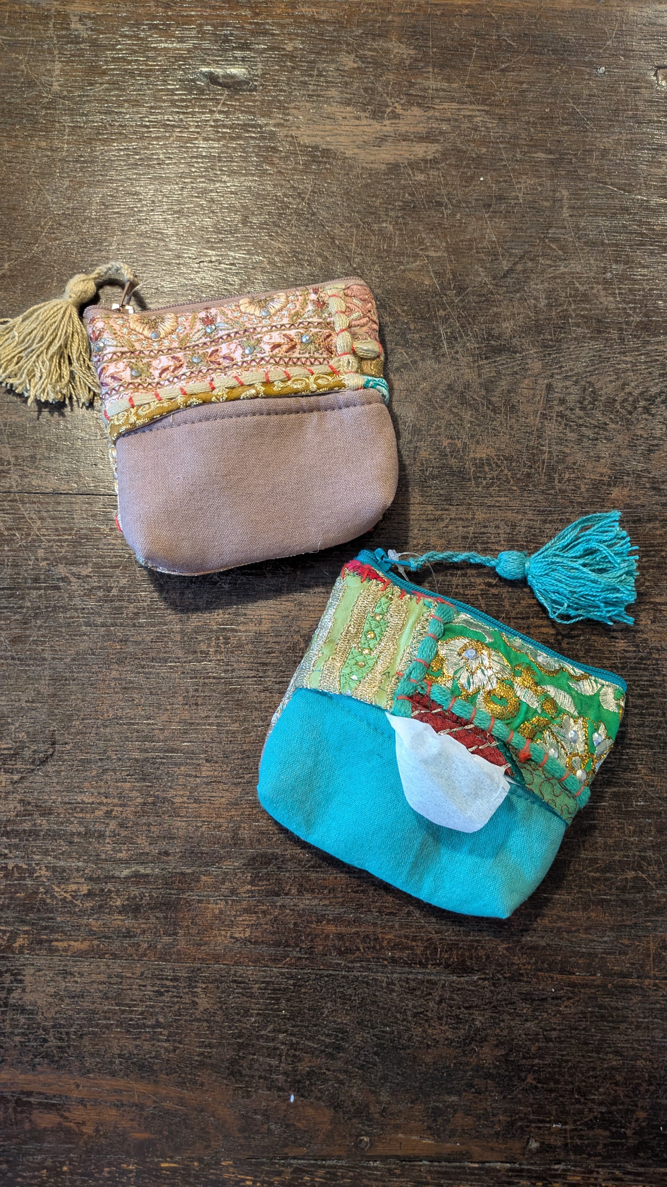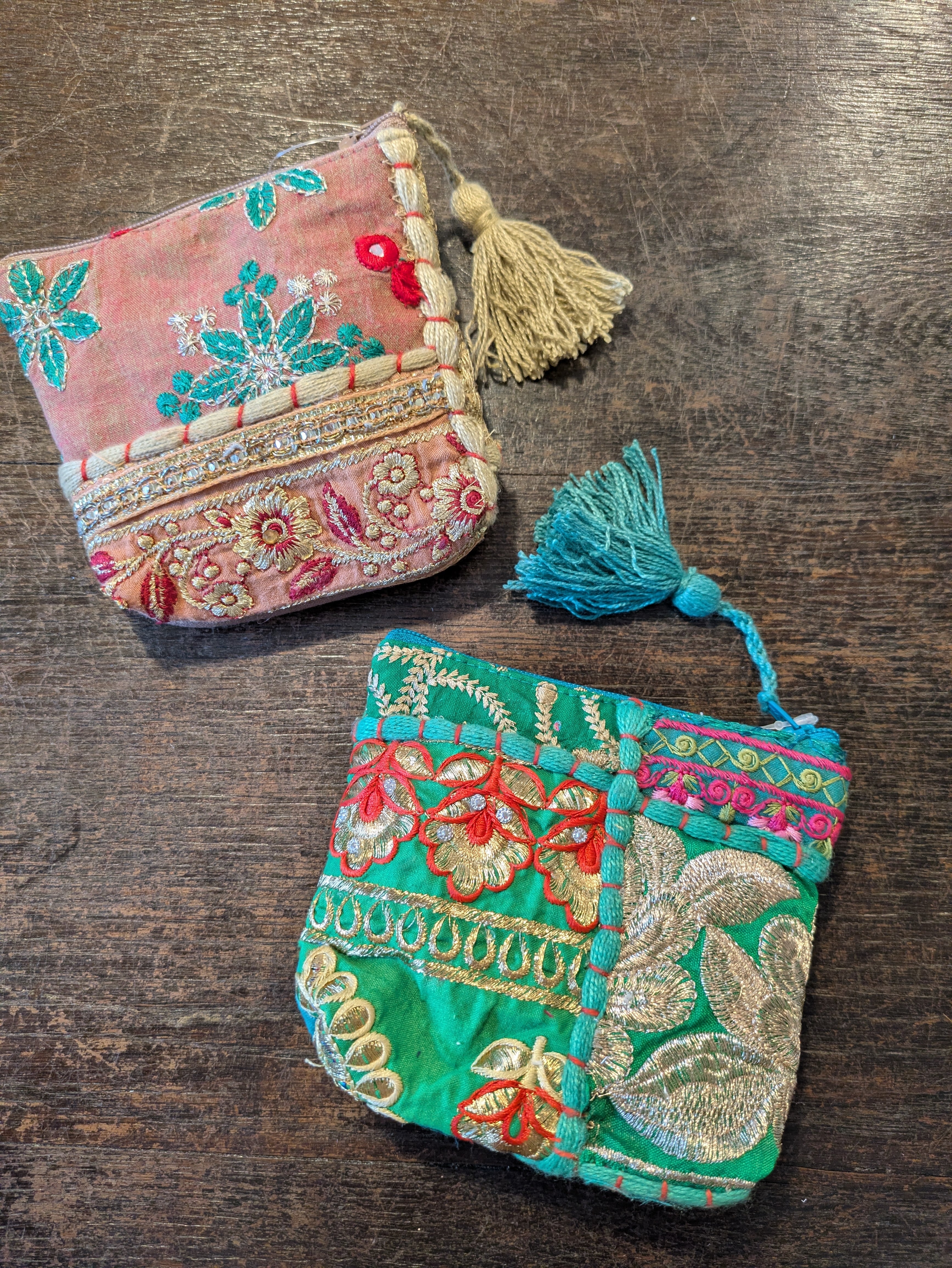 インドの民族衣装サリーをはじめとする伝統的な刺繍生地をはぎ合わせて作りました。