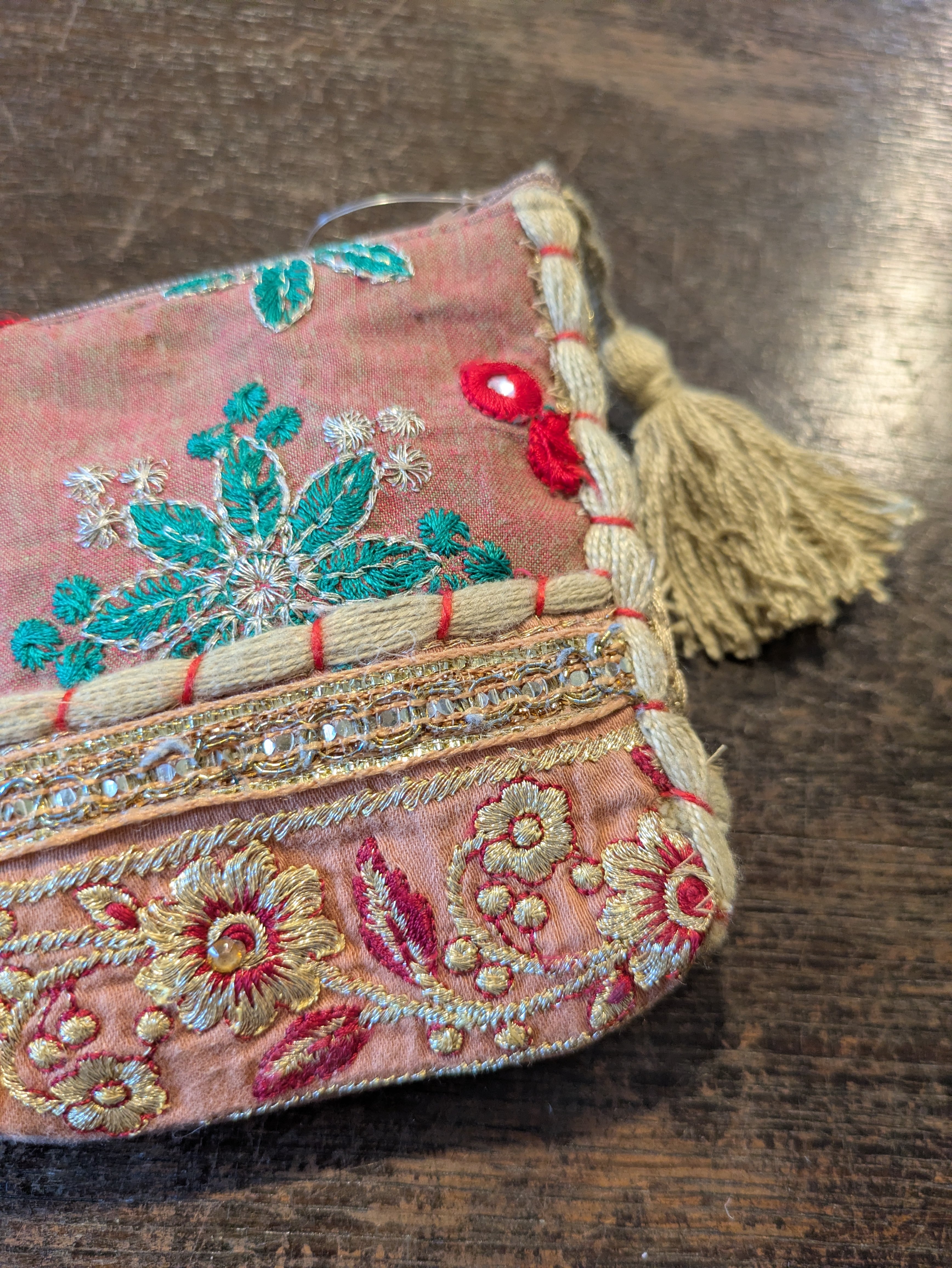 北インドに伝わるカンバディアパッチワーク。サリーやクルタなど、華やかな刺繍やビーズが施された伝統衣装の希少なヴィンテージ布をひとつひとつ手でつなぎ合わせた生地です。