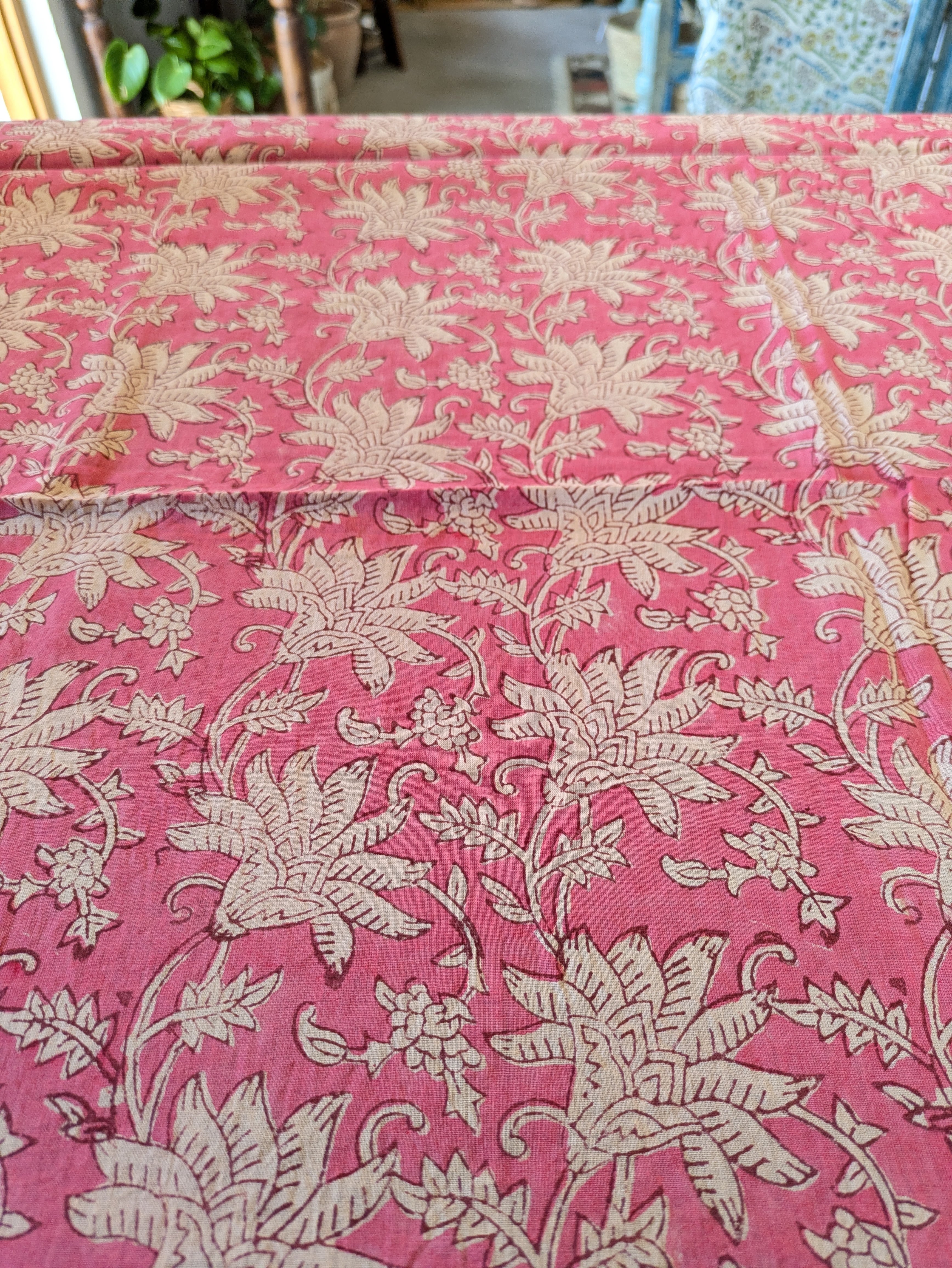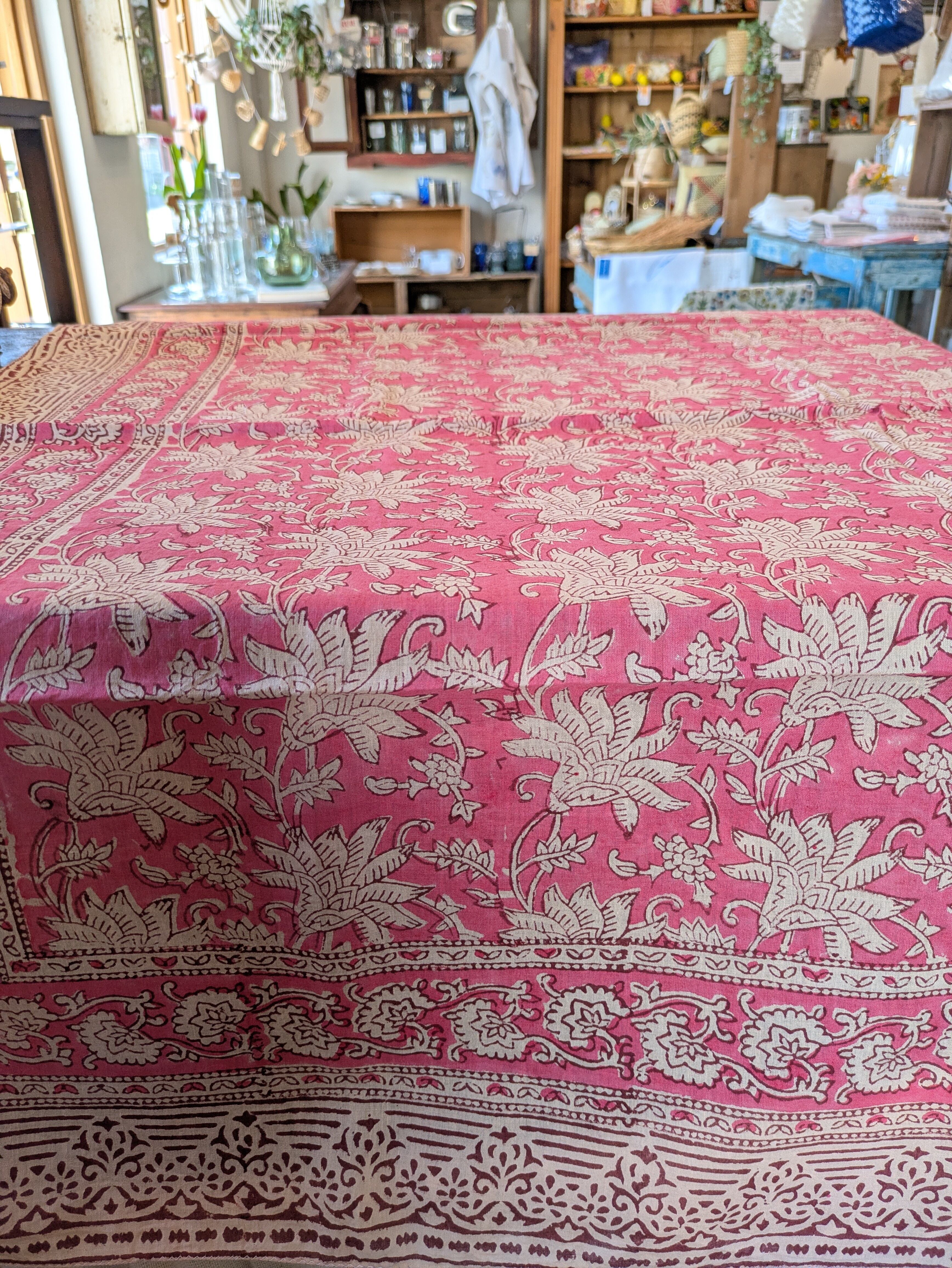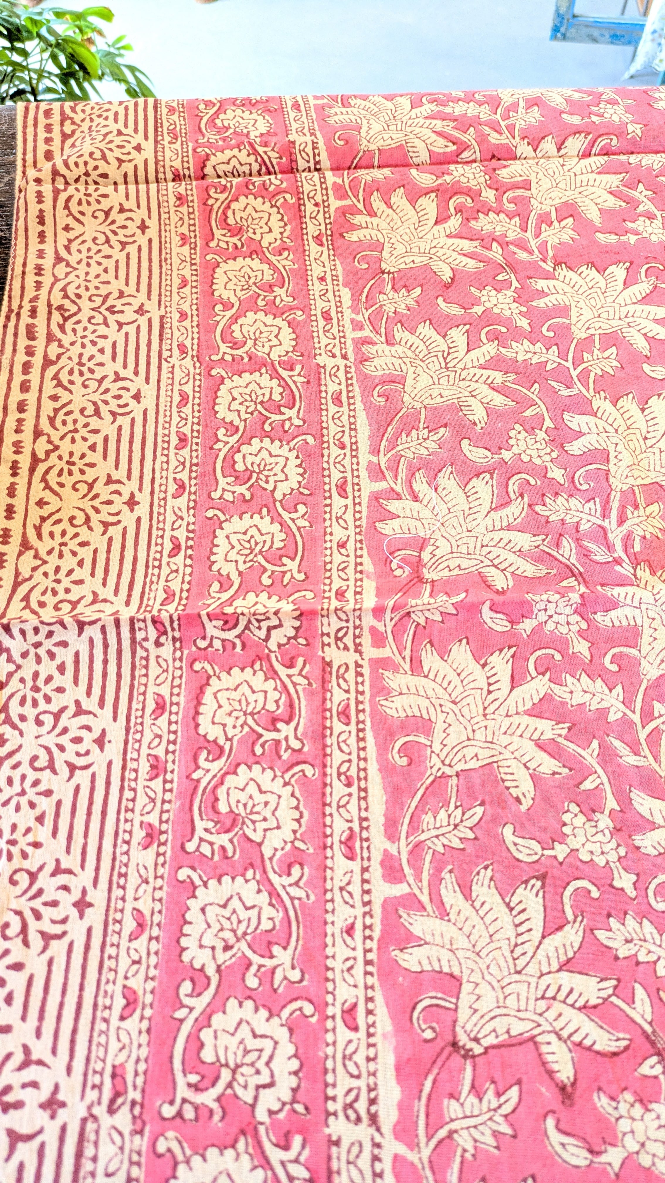 【インド】サンガネール ブロックプリントコットンスカーフ・ピンク