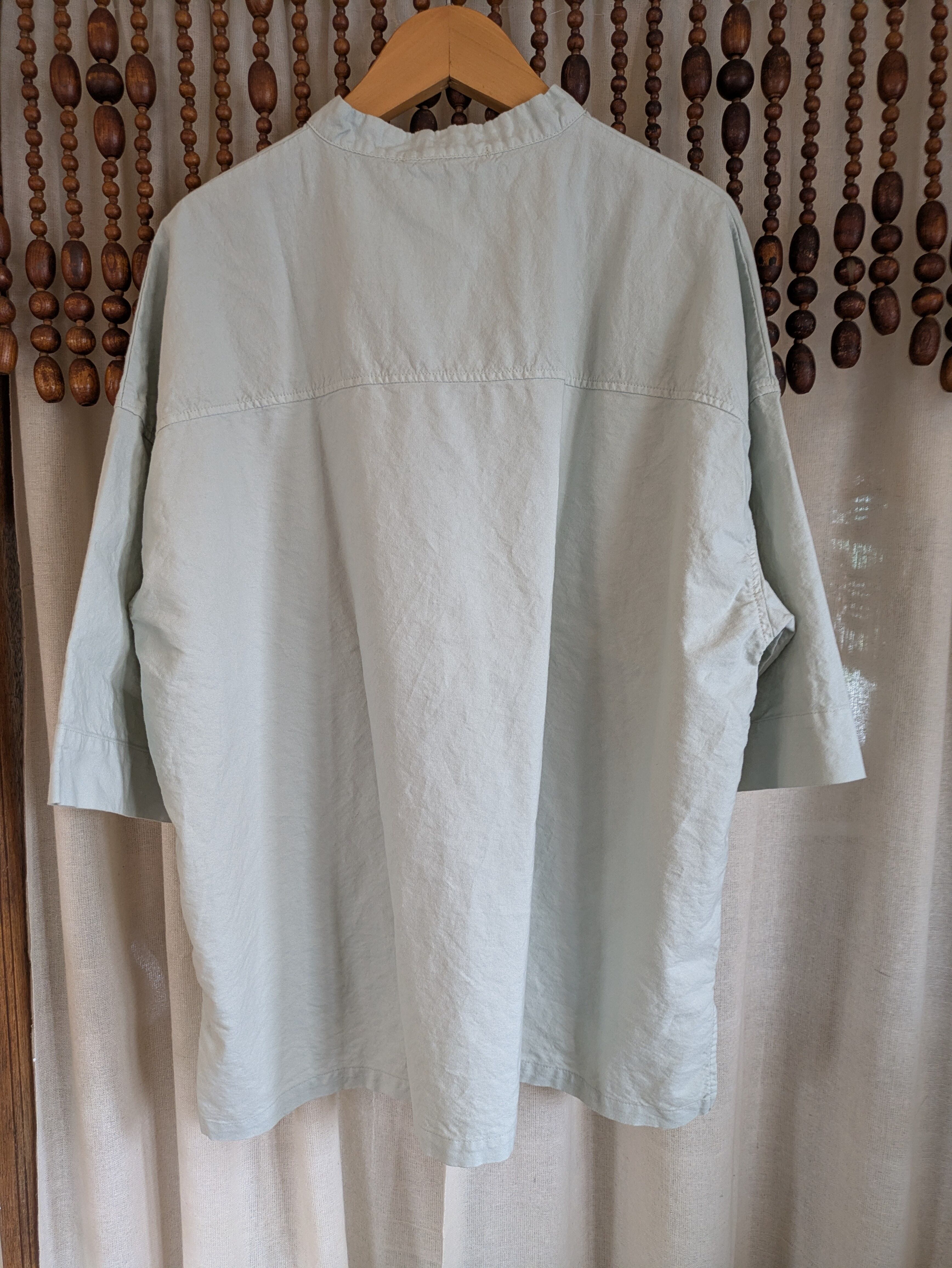 シーズンレスで着ていただける定番のオックス生地を使用したレギュラーカラーの6分袖丈のシャツです