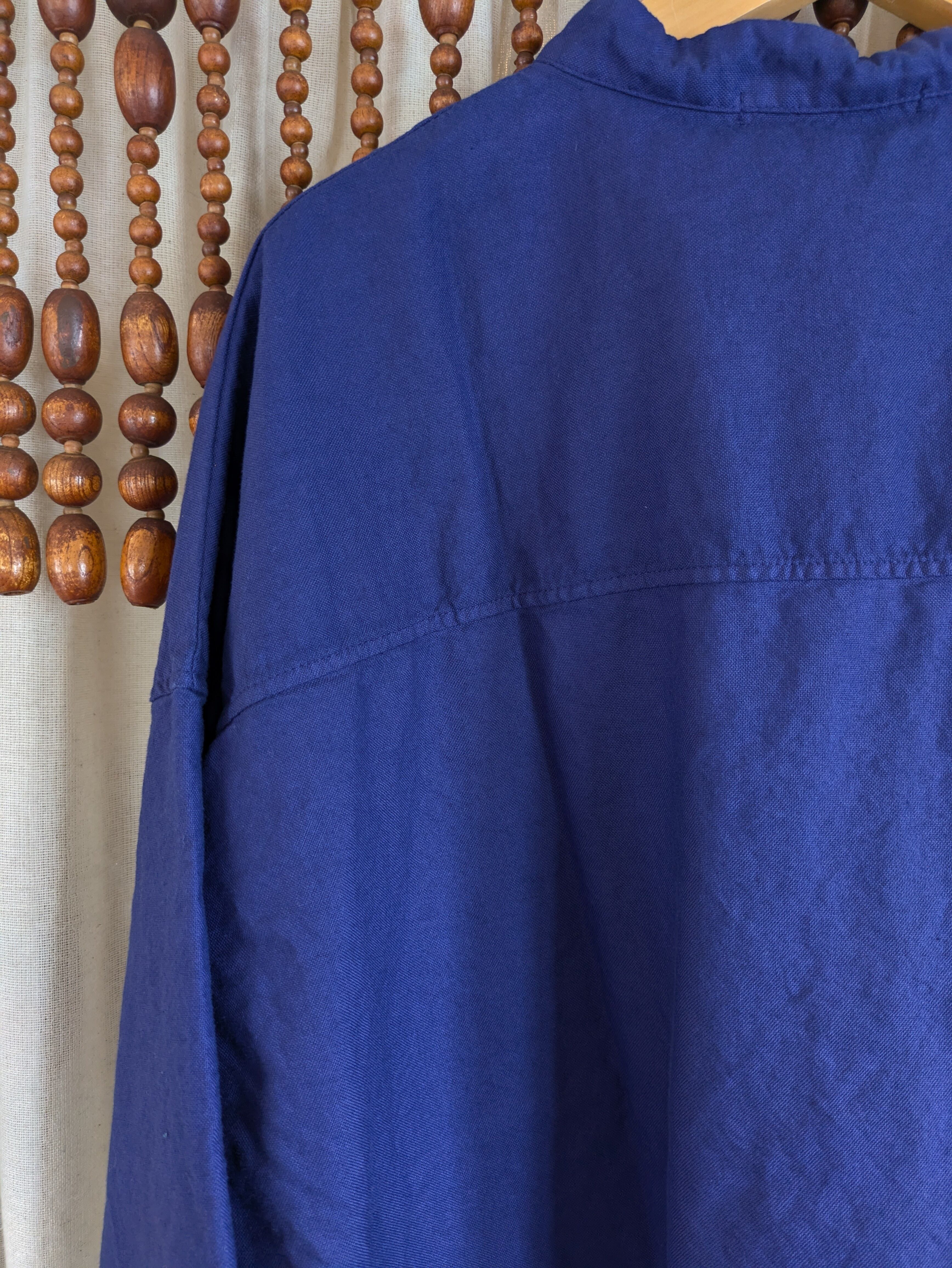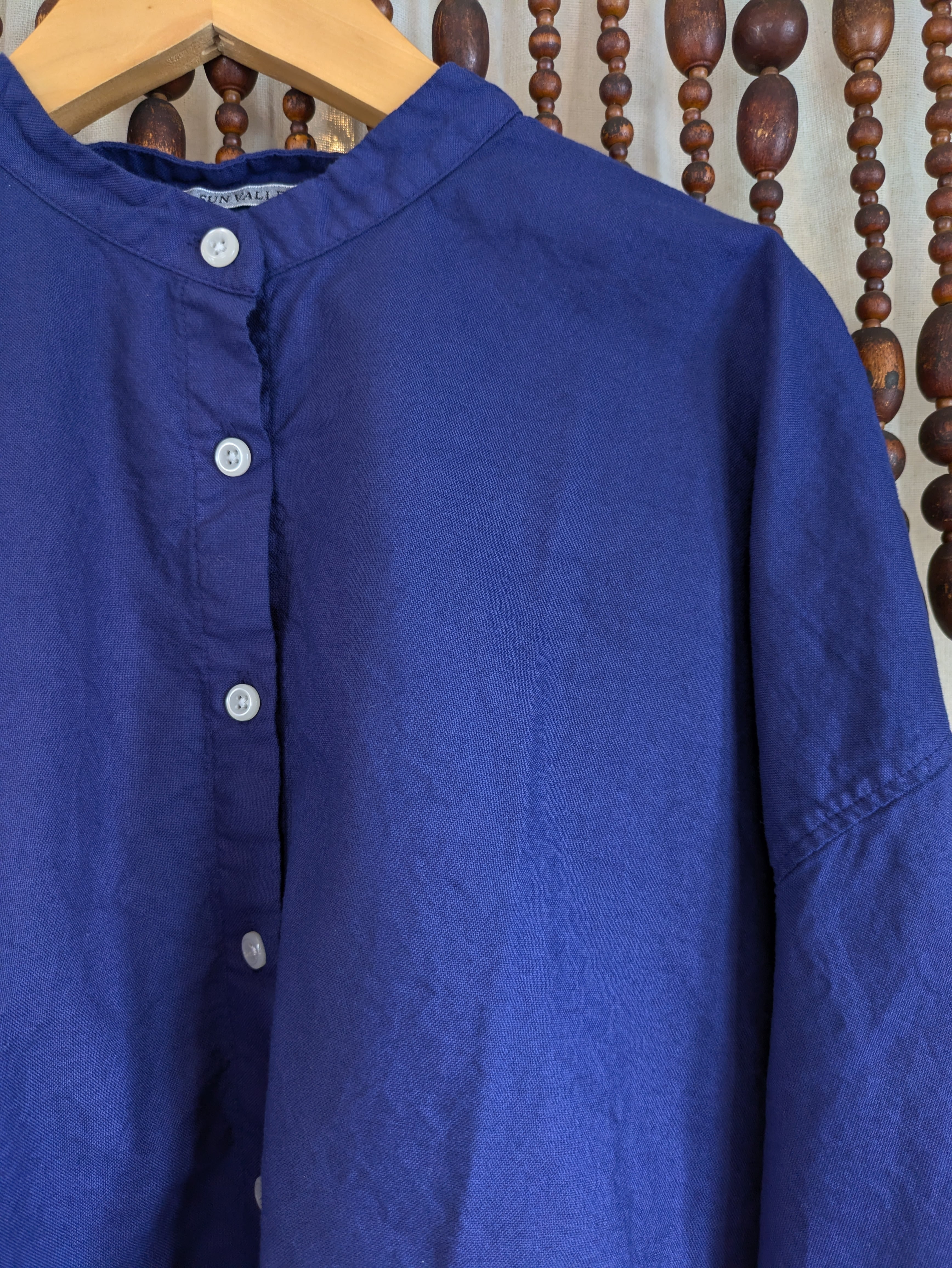 SUN VALLEY サンバレー オックス 6分袖シンプルシャツ・ロイヤルブルー
