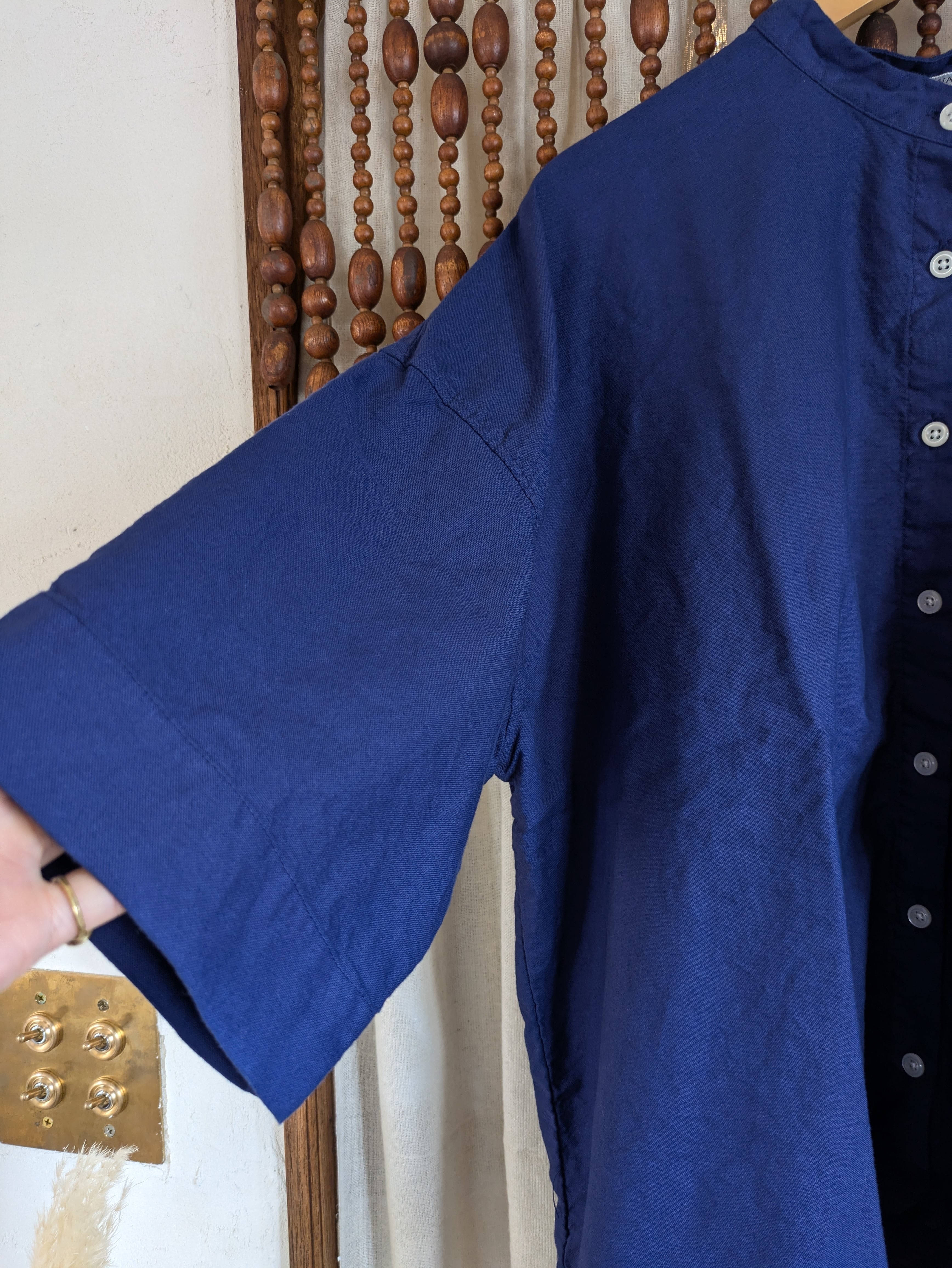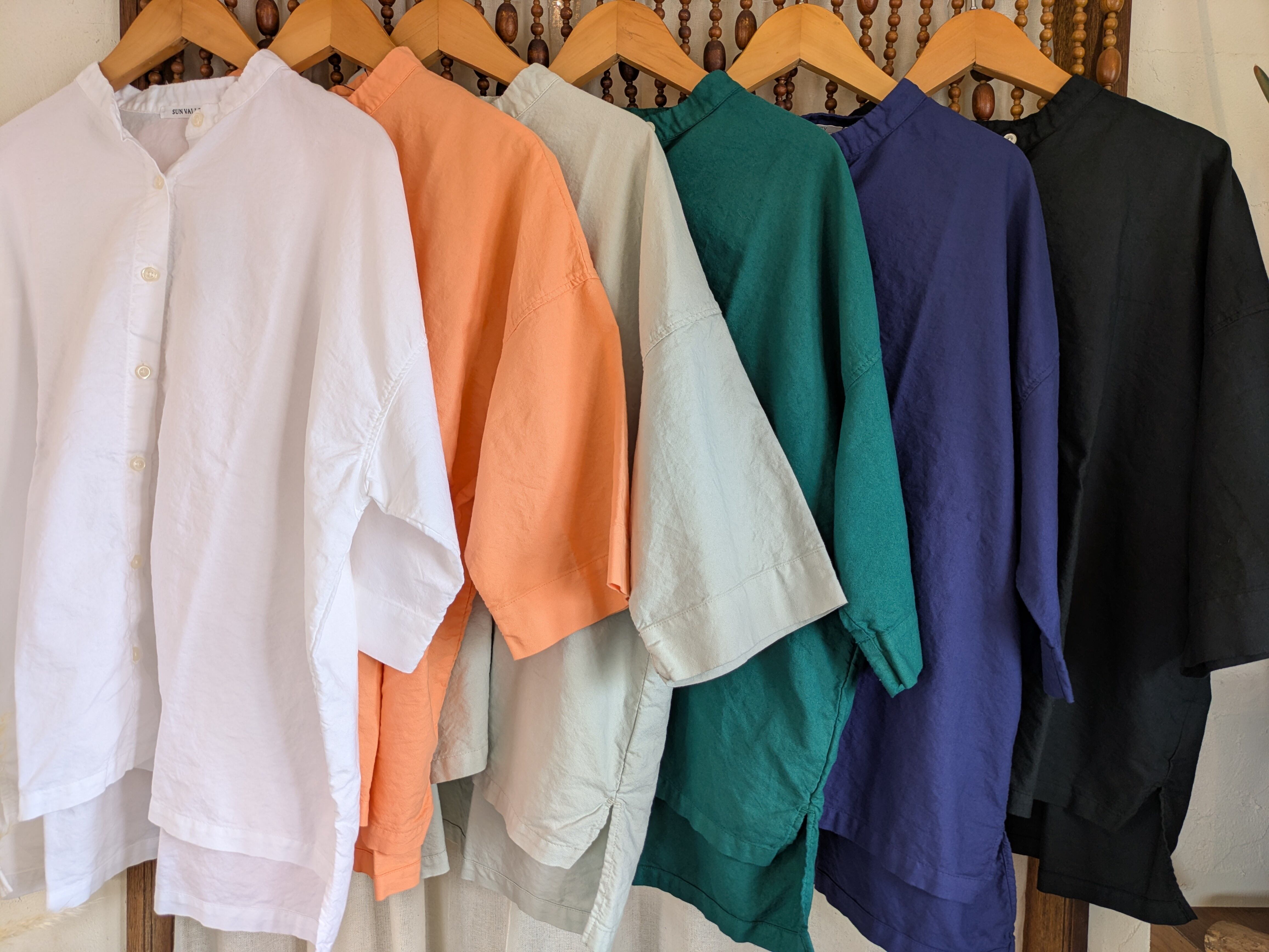 シーズンレスで着ていただける定番のオックス生地を使用したレギュラーカラーの6分袖丈のシャツです