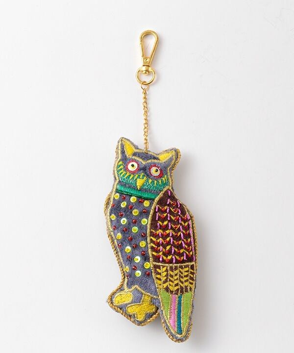 【インド】ザリ刺繍 バッグチャーム キーホルダー・フクロウ
