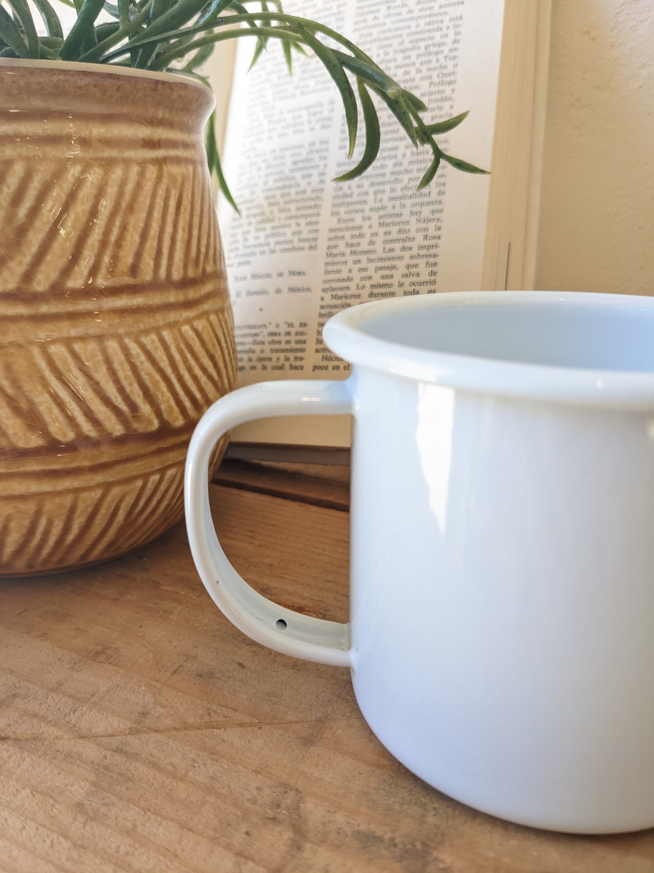 落ち着いた雰囲気のグレーカラーのホーローマグです