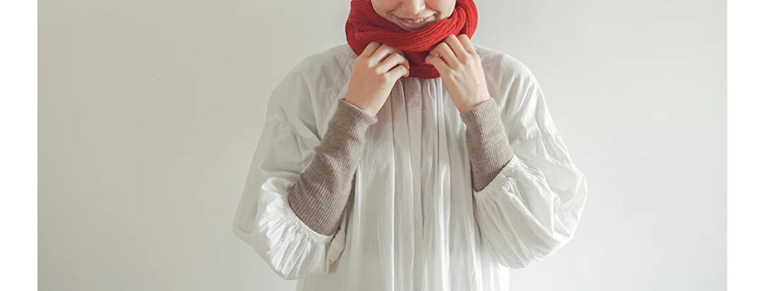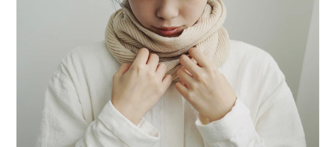 二重編みで生地の中に空気を含むため、冬の寒さから首を温めてくれます◎